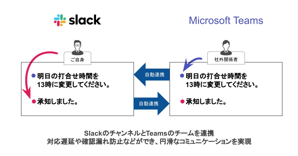 SlackとTeamsの連携により対応遅延や確認漏れ防止などができ、円滑なコミュニケーションを実現することができます。