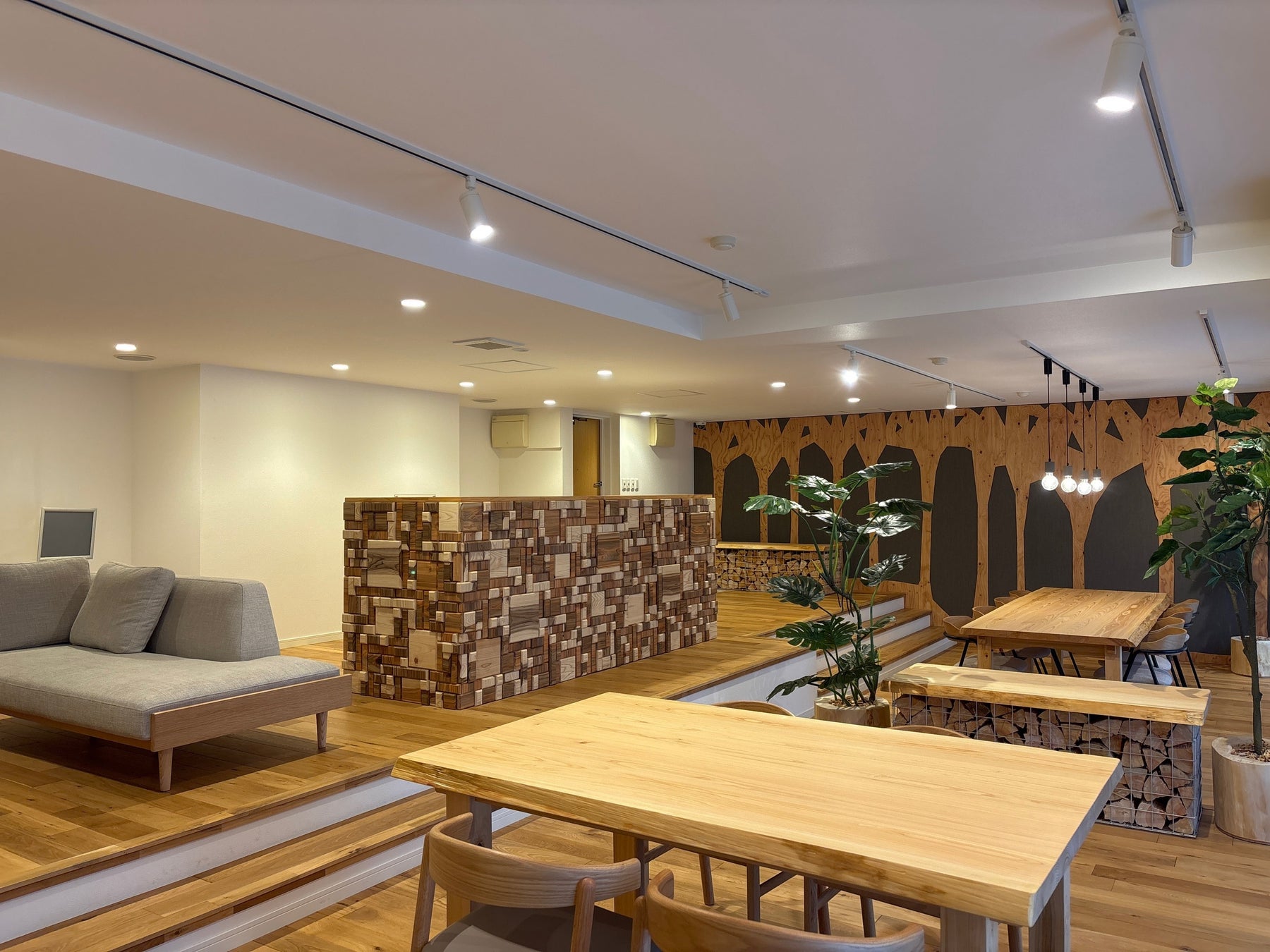 ・厚木市森林組合と連携することで規格外の木材の活用を実現したキッチン付きのラウンジ