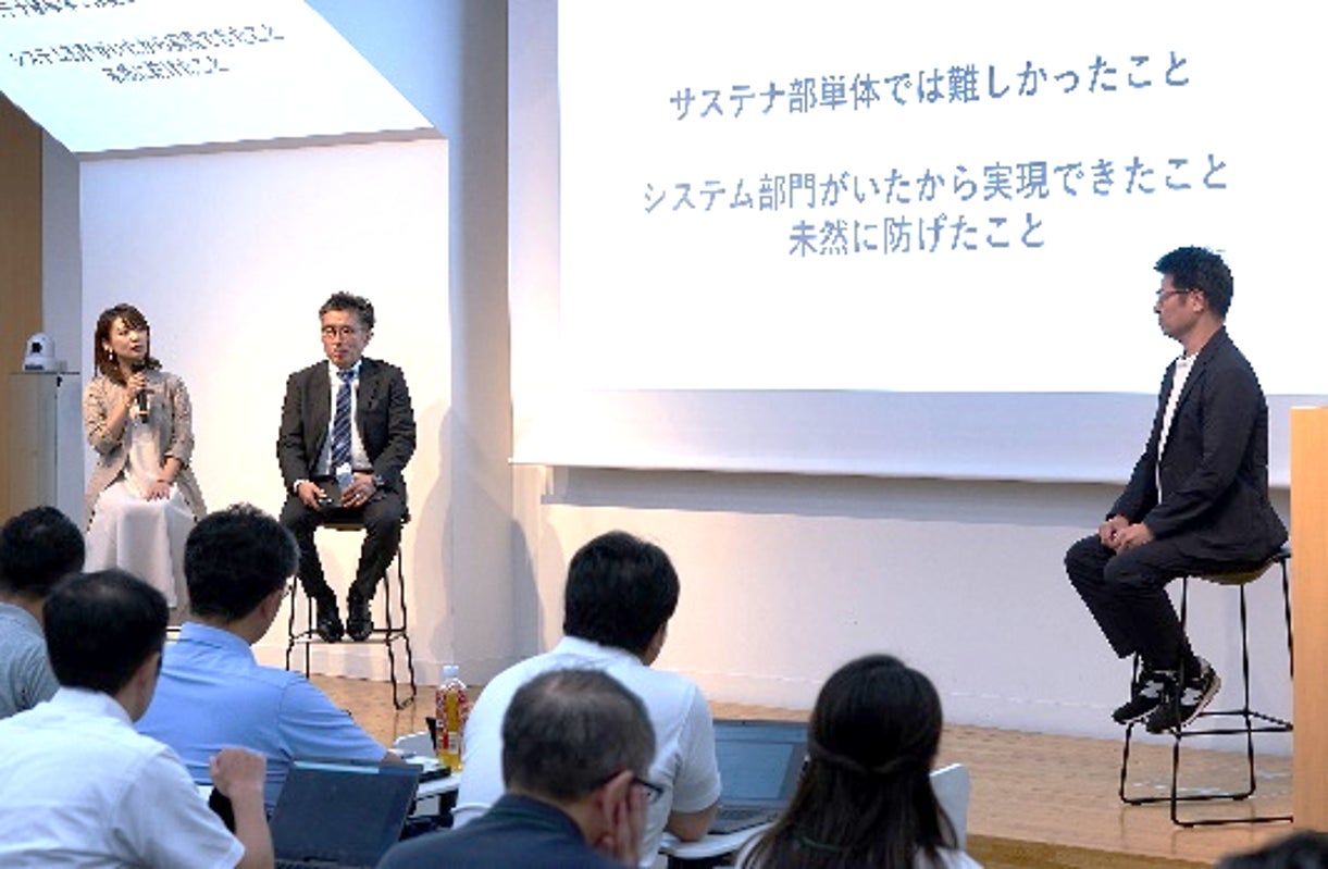 We also invited Mr. Urakami, Executive Officer and Head of the IT and Digital Strategy Division at Itochu Corporation, and Mr. Yoshizaki, Project Manager in the Digital Strategy Office of the IT and Digital Strategy Division, as key figures in the "System Implementation" for SX promotion at Itochu Corporation. They shared examples of Itochu Corporation's initiatives from the perspective of "Sustainability System Implementation." They discussed the importance of advancing projects with a dual approach involving both the business and IT departments, highlighting specific examples of what could only be achieved with the involvement of the IT department.