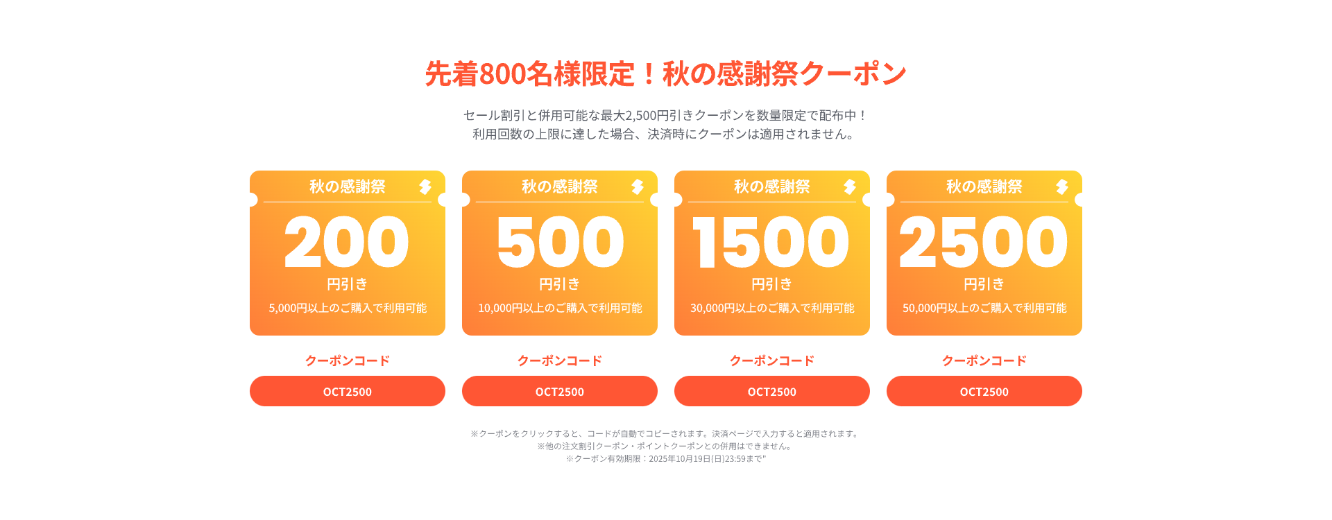 ※他の注文割引クーポン・ポイントクーポンとの併用はできません。