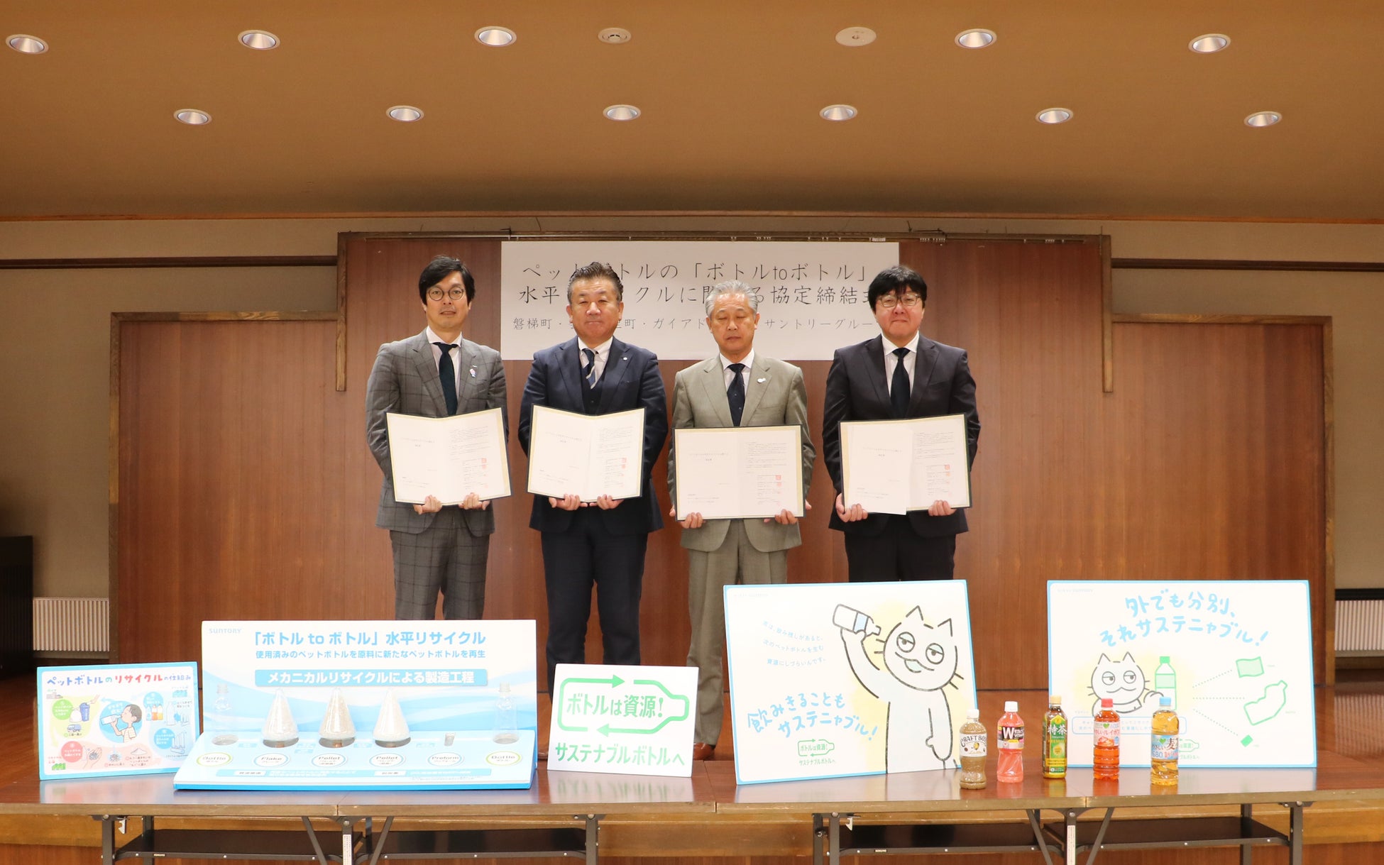 【福島県磐梯町・会津美里町】磐梯町、会津美里町、㈱ガイアドリーム、サントリーグループは、使用済みペットボトルを新たなペットボトルに生まれ変わらせる水平リサイクルに関する協定を締結しました
