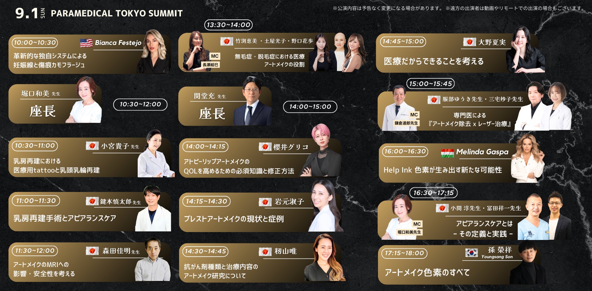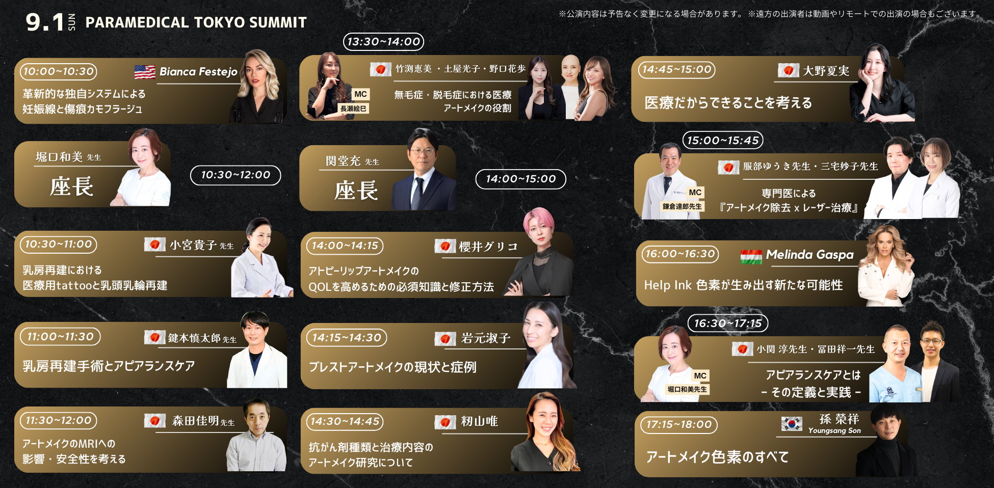 最先端の医療アートメイクの世界に浸る2日間。最終ラインナップとタイムテーブルがついに公開されました!(9月1日〜2日: 東京霞ケ関イイノホール)