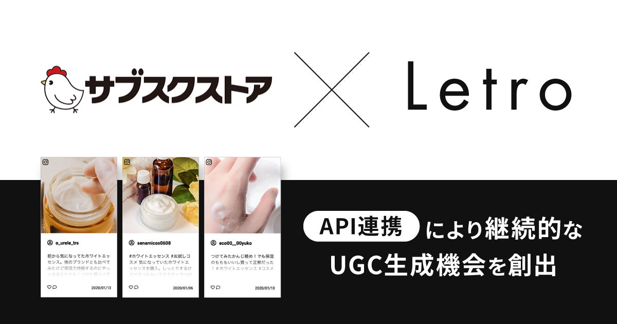 Letro、サブスクビジネス支援サービス「サブスクストア」とのAPI連携により運用型UGCのカギとなるUGC生成を自動化