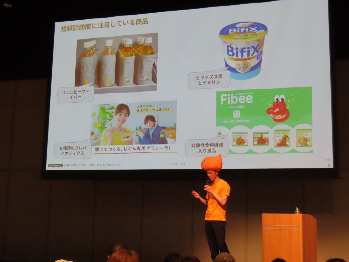 イベント最後の講演は、観便&腸活アプリ「ウンログ」を運営する田口様にご登壇いただきました。講演では、短鎖脂肪酸についての解説、日常生活で短鎖脂肪酸を作り出すコツ、2024年の腸活トピックスについてお話しをいただきました。