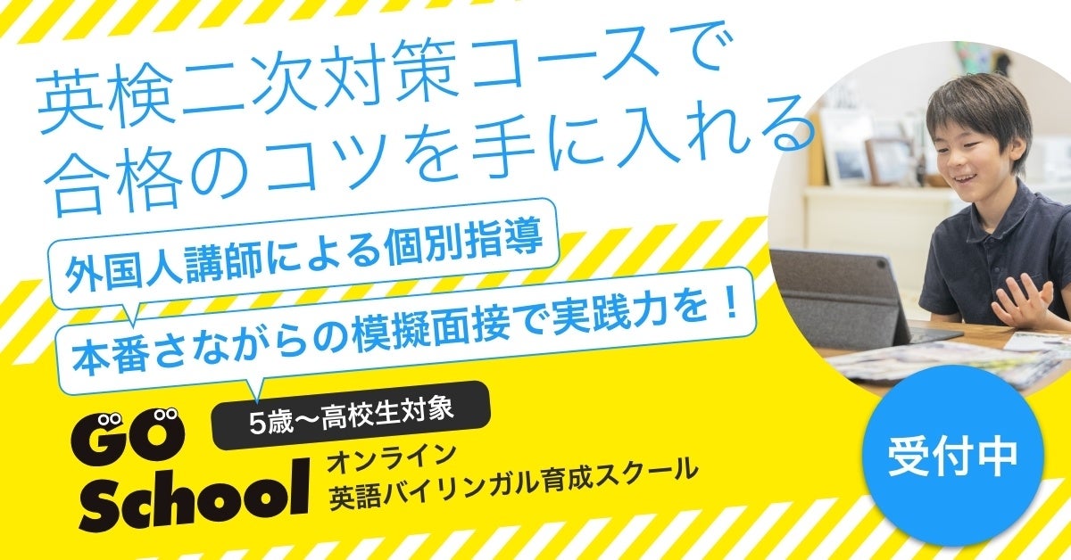 あらゆる年齢層に対し生涯にわたるリカレント教育を提供する株式会社ビジネス・ブレークスルー(東京都千代田区、代表取締役社長:柴田 巌、以下BBT)は、インターナショナルスクール・グループ校のノウハウを集結させた、子ども向けオンライン英語バイリンガルスクールGO Schoolにおいて、日本英語検定(以下、英検)の二次試験対策コース『GO EIKEN! 』を10月17日(月)から開講したことをお知らせします。