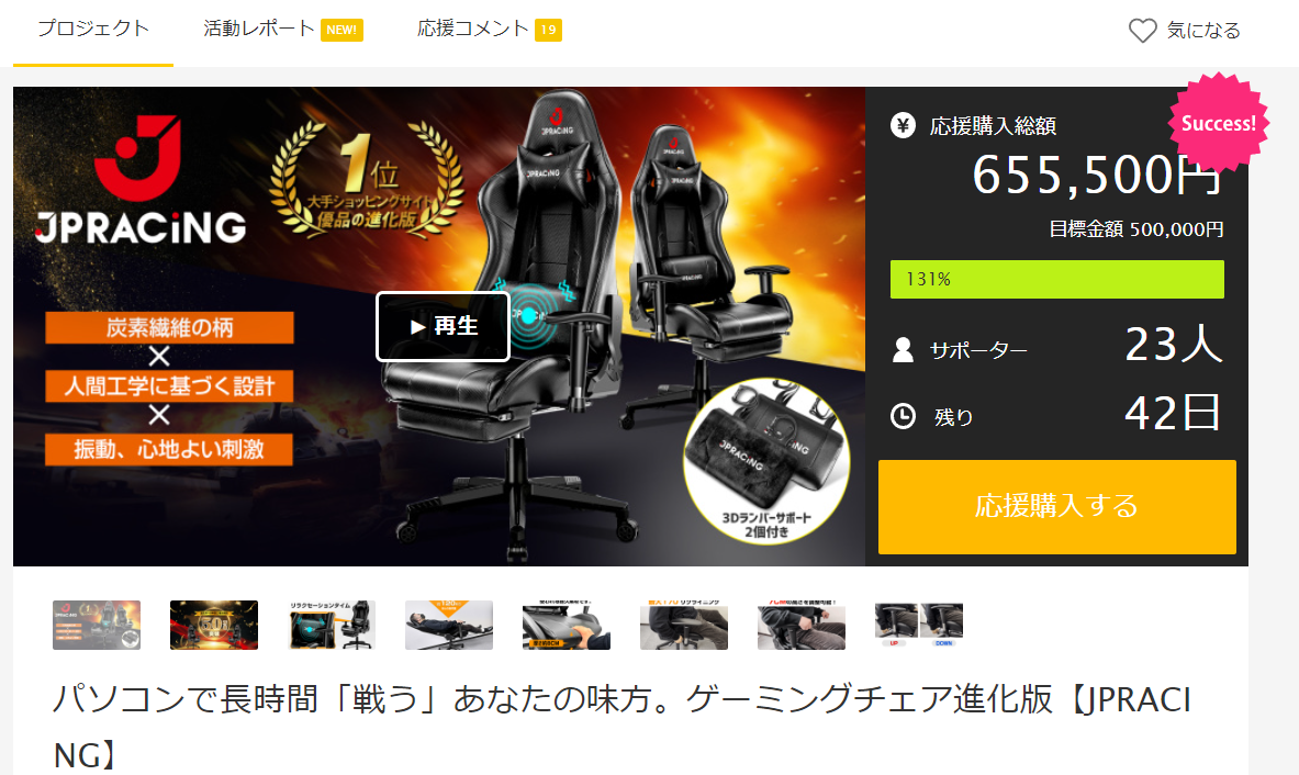 「Makuake」にて開始24時間で【目標金額100%突破!】史上最強のゲーミングチェア|JPRACING JCG-02PRO販売開催中!