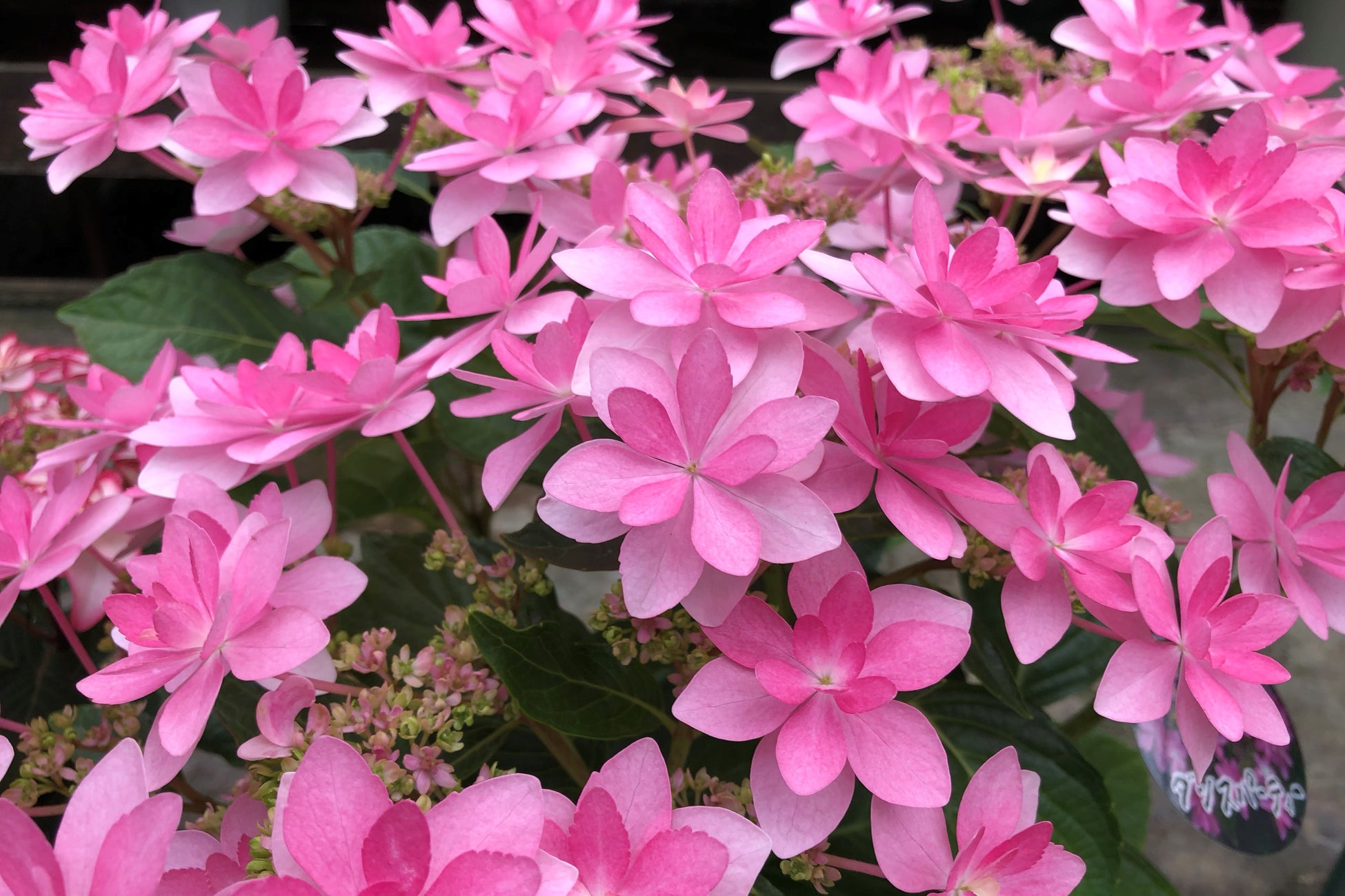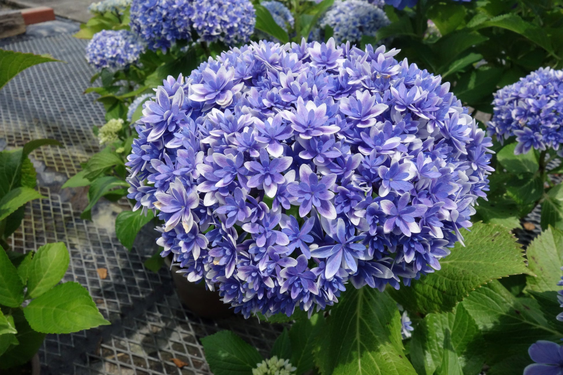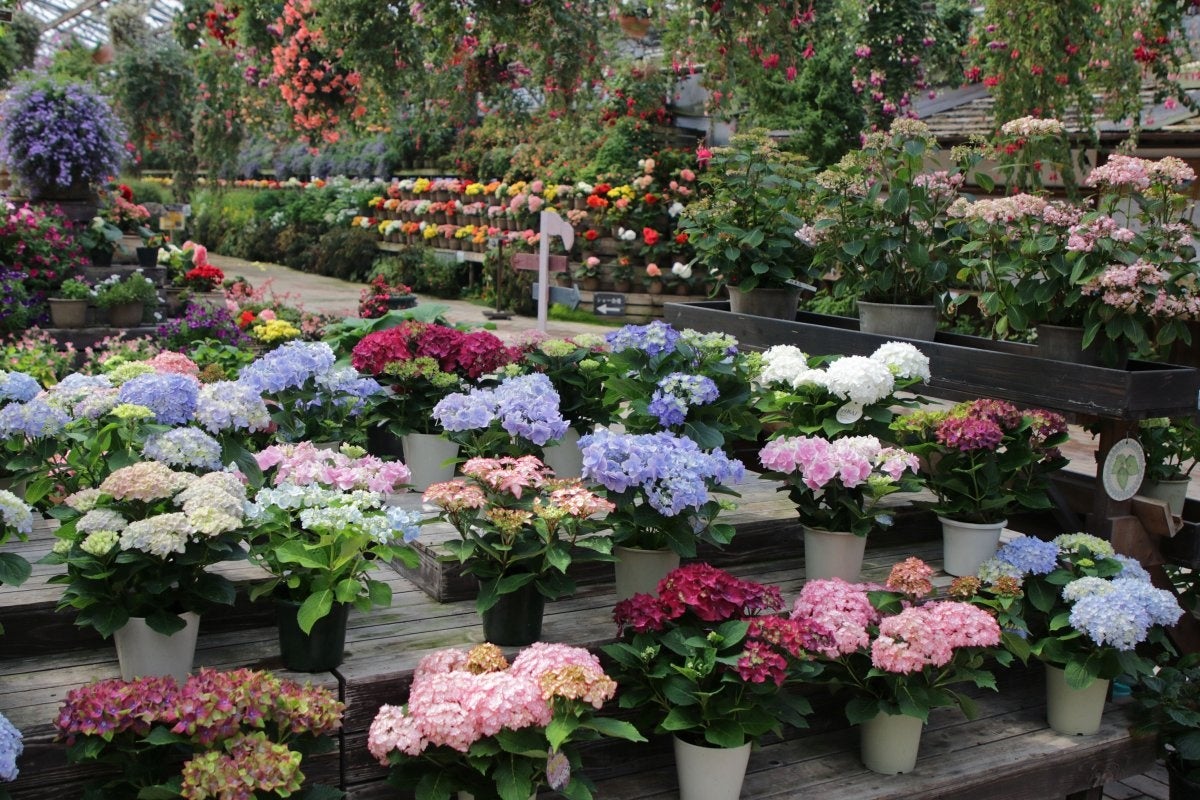 加茂荘花鳥園はオリジナルアジサイ「Kamoセレクション」の発祥の地。ここでは花菖蒲・アジサイシーズン中、アジサイヒルズに展示してある約500鉢からお好きな花を選べます。写真も撮り放題です。