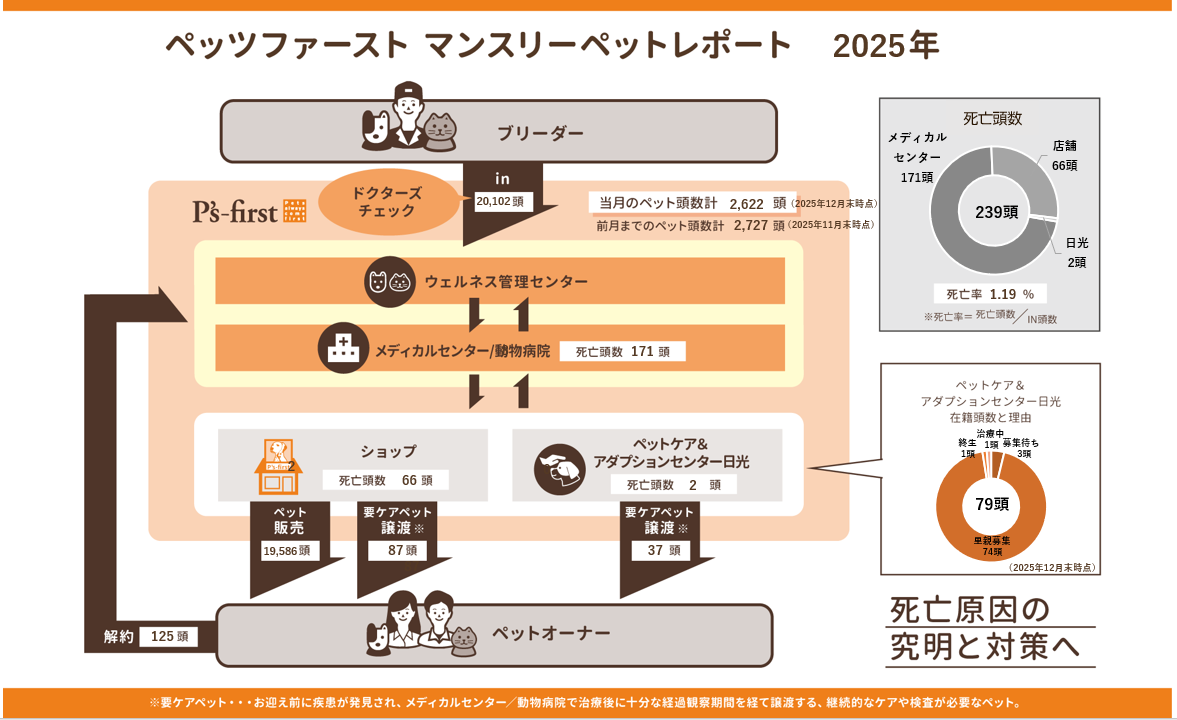 ペッツファーストでは、「死亡事故ゼロ」を重要な経営課題として掲げ、2025年は、ペットの取引前から店舗、医療体制の整備まで一貫したリスク低減策を強化しました。