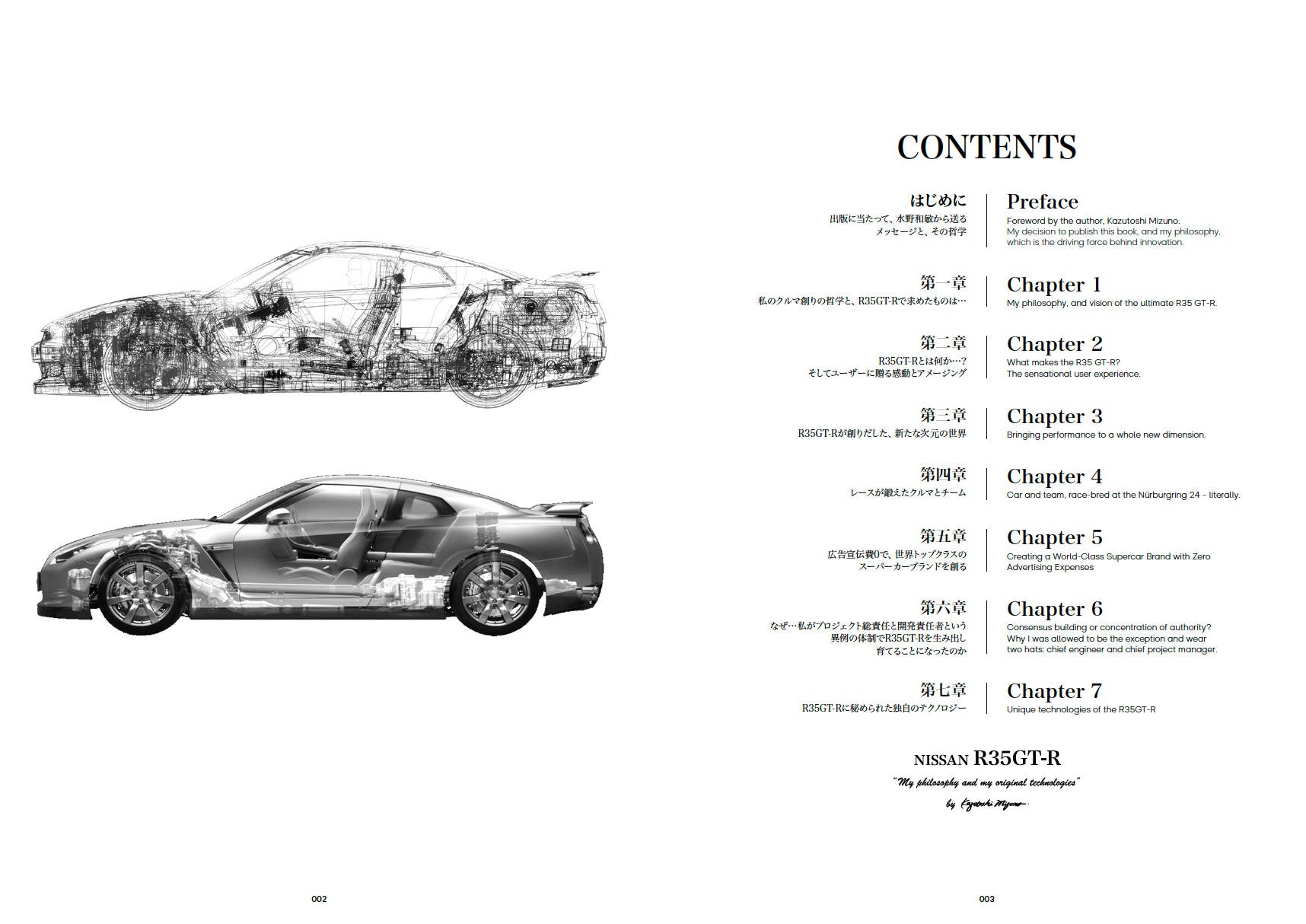 そして、15年以上を経て市場の答えがでた今だから…R35GT-Rのユーザーやファン、そして未来を創るエンジニアに向けて、R35GT-Rだけが持つ「先進的でユニークな 独創的テクノロジーや、モノ創りの哲学と発想の原点、その思考と構想化の道筋」などを、開発責任者自身が直筆で正しく伝えたい。そんな、世界に例をみない本となっています。