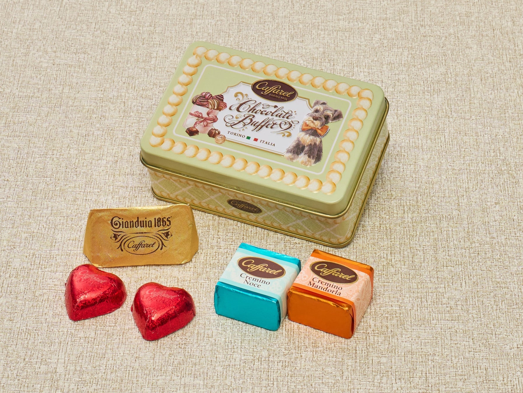 イタリアの老舗チョコレートブランド「カファレル」からバレンタインコレクション2024発売。スイーツブッフェに並ぶ、きらめくドルチェをイメージしたデザイン缶などが登場