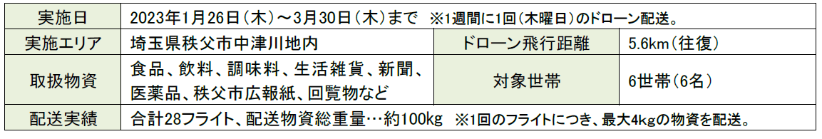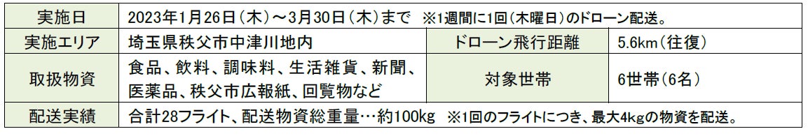 秩父市中津川地内で実施したドローン定期配送が完了~ 1月26日(木)から合計28フライト、総重量約100㎏の物資を配送 ~