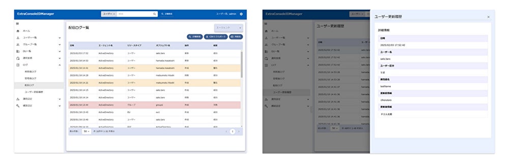 アカウント単位で過去どのような更新があったかをGUIで確認できる機能を搭載しました。テキストベースのログを辿って確認する必要がないため、正確なユーザーアカウントの更新管理が可能となりました。