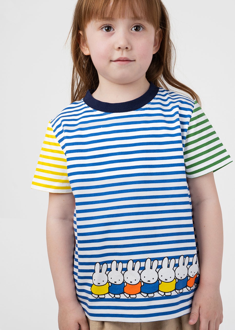 カラフルなボーダーの裾にミッフィーたちが仲良く一列に並んだデザイン。