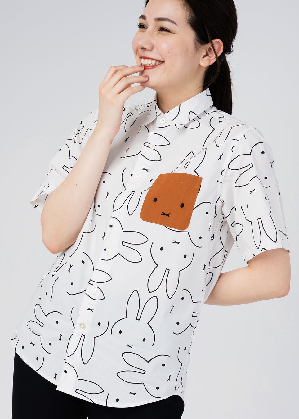 ミッフィーの顔を上下左右の角度で組み合わせたデザイン。ミッフィーの顔になったポケットがポイントに。