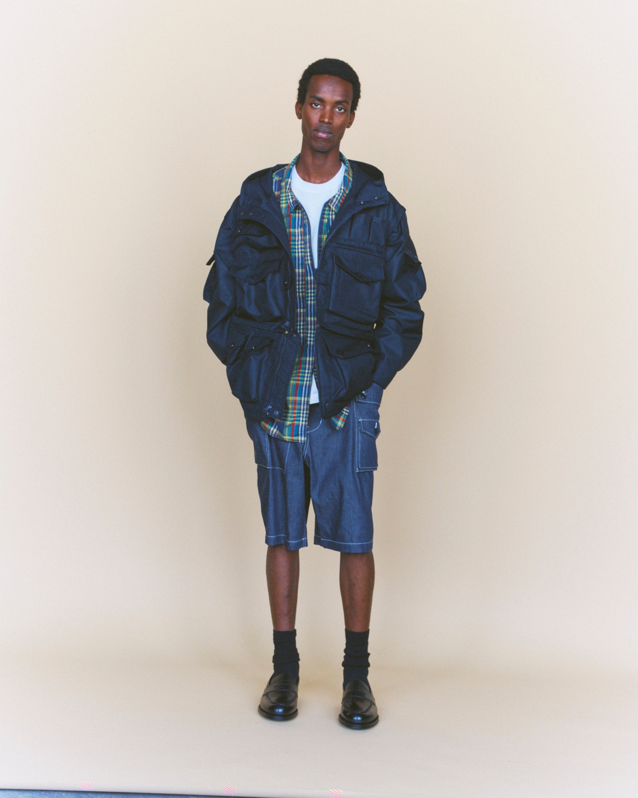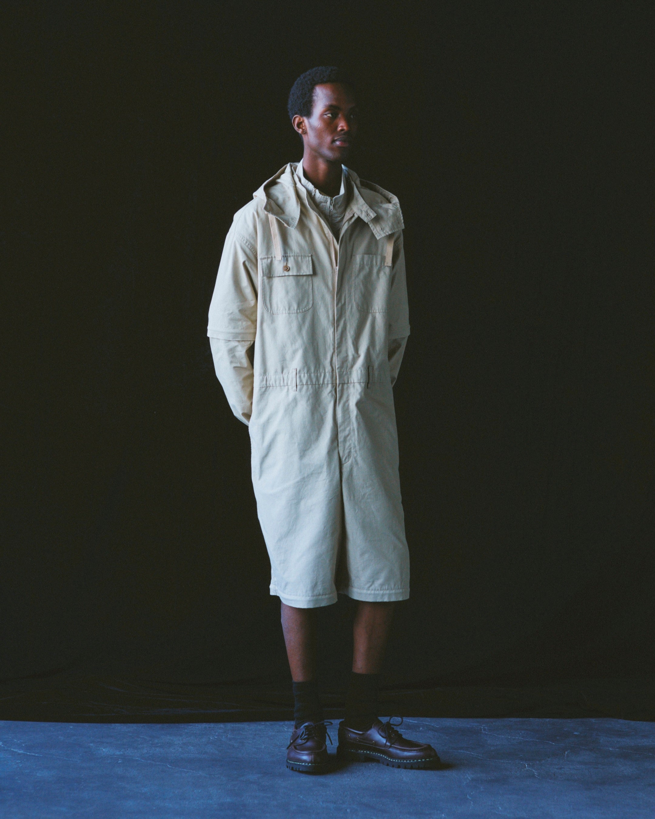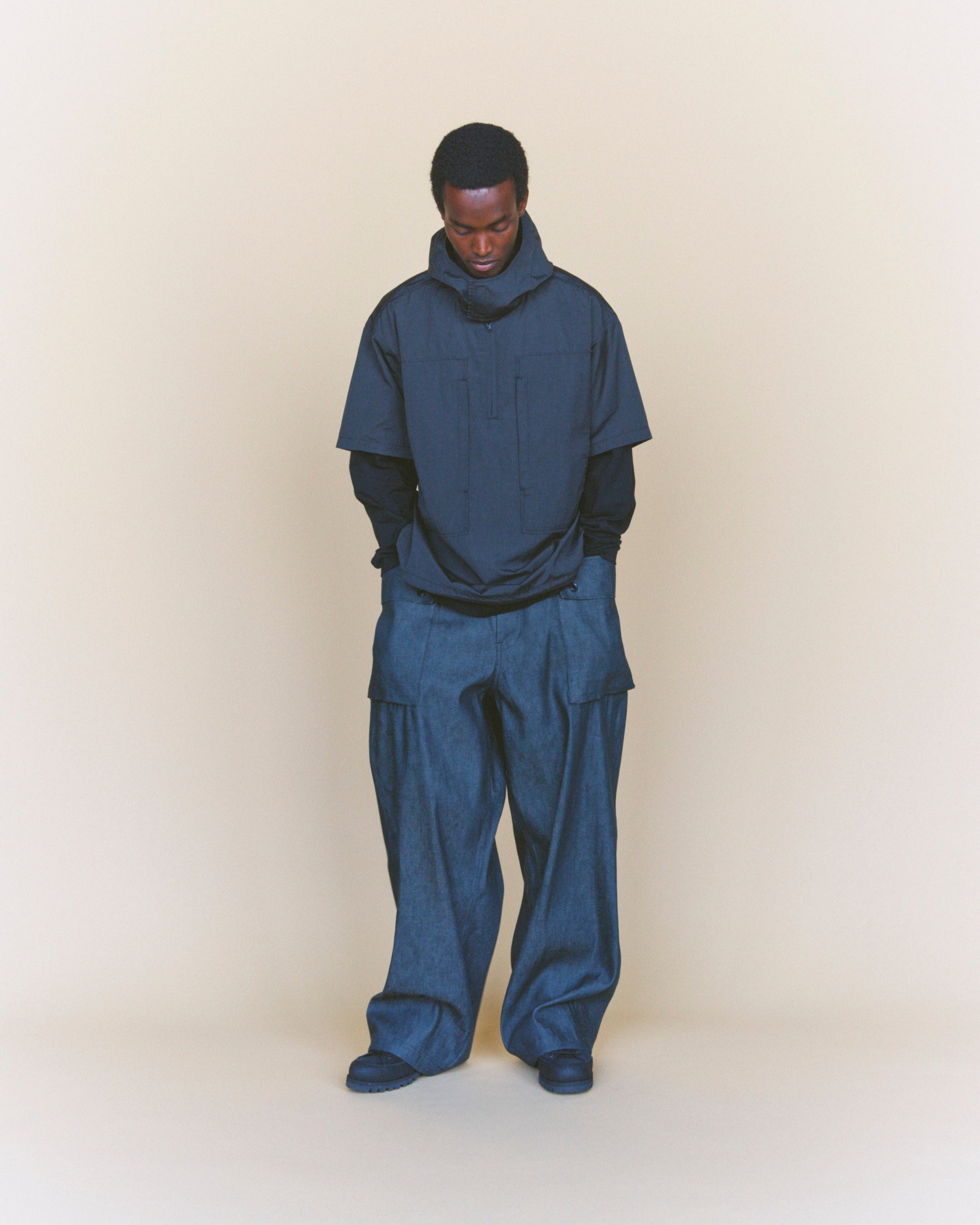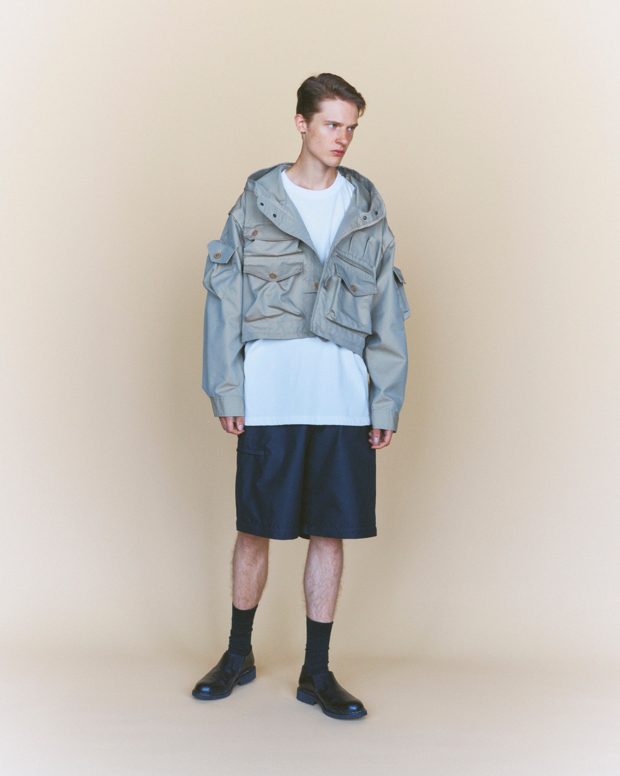 2ndデリバリーでは、ヴィンテージのアーミーシャツをベースに、マドラスチェックと着脱式のフードが印象的なZIP HOODED SHIRTや、長袖から半袖へ自在に袖の長さを変えられるDETACHABLE L/S TEEなど、今シーズンのテーマである「脱着による可変構造」を備えたウェアを展開。