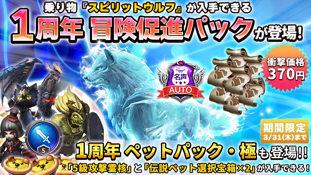 ■乗り物『スピリットウルフ』が入手できる、1周年 冒険促進パックが新たに登場!