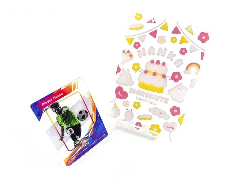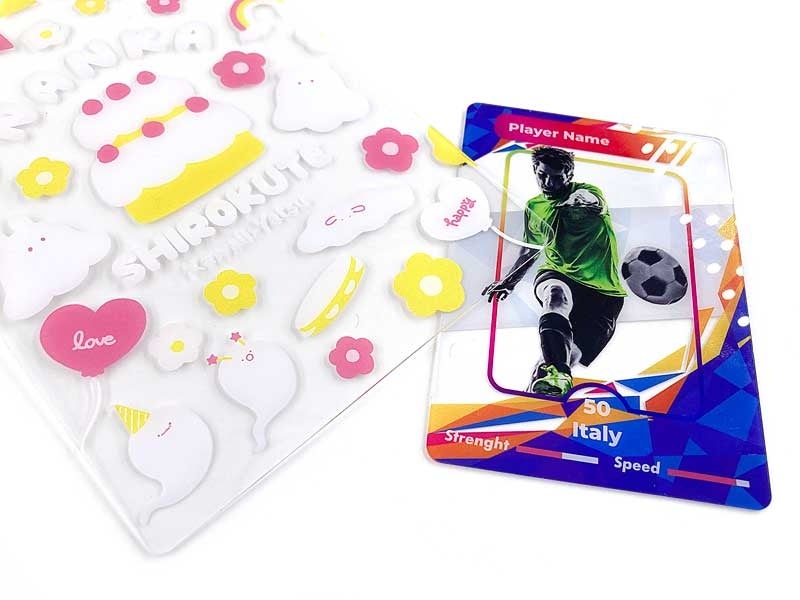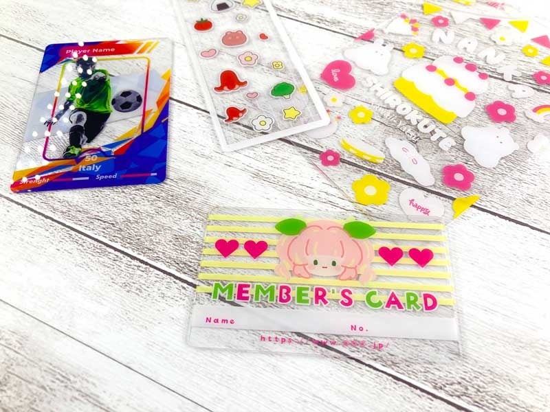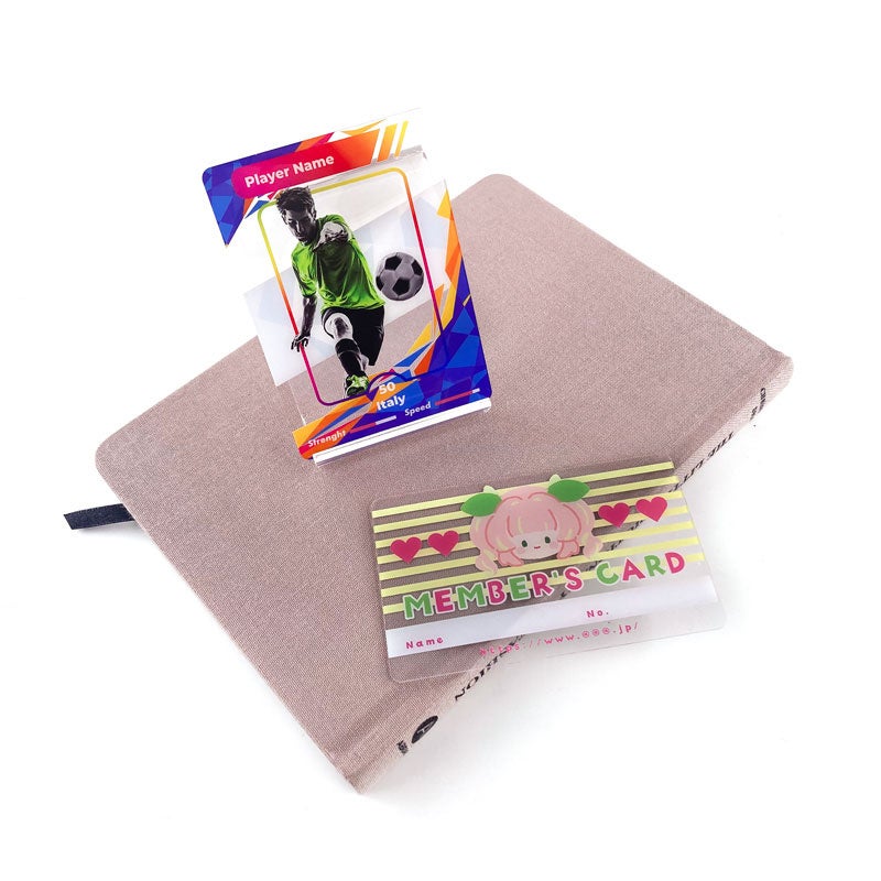 プラスチックカードにオリジナルのデザインを印刷することができます。こ名刺、ショップカード、ポストカード、トレーディングカード(トレカ)、しおりなど、様々なサイズをご用意。アイディア次第で魅力的なカードが作成頂けます。