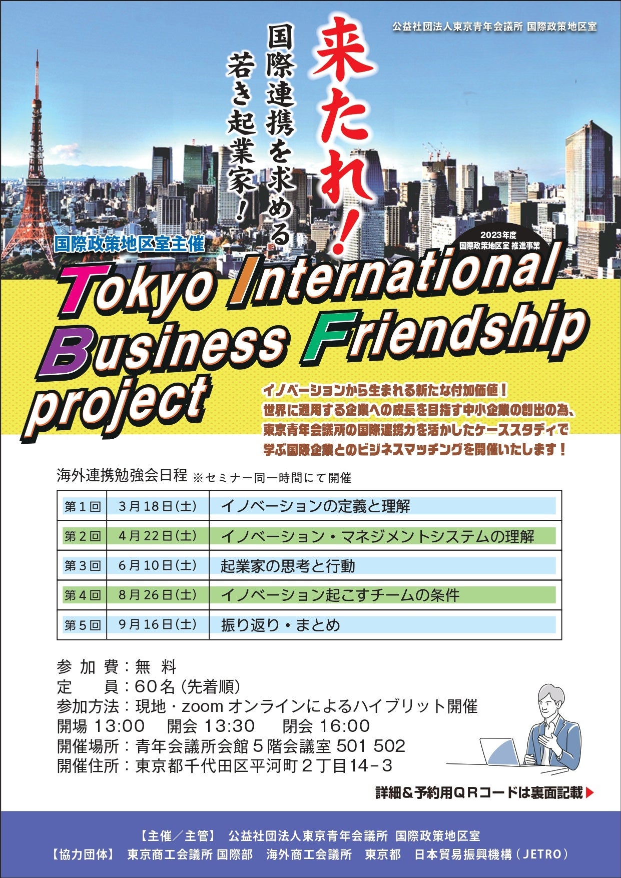 来たれ! #国際連携 を求める若き起業家!国際政策地区室主催『Tokyo International Business Friendship project』Vol.2 開催告知!