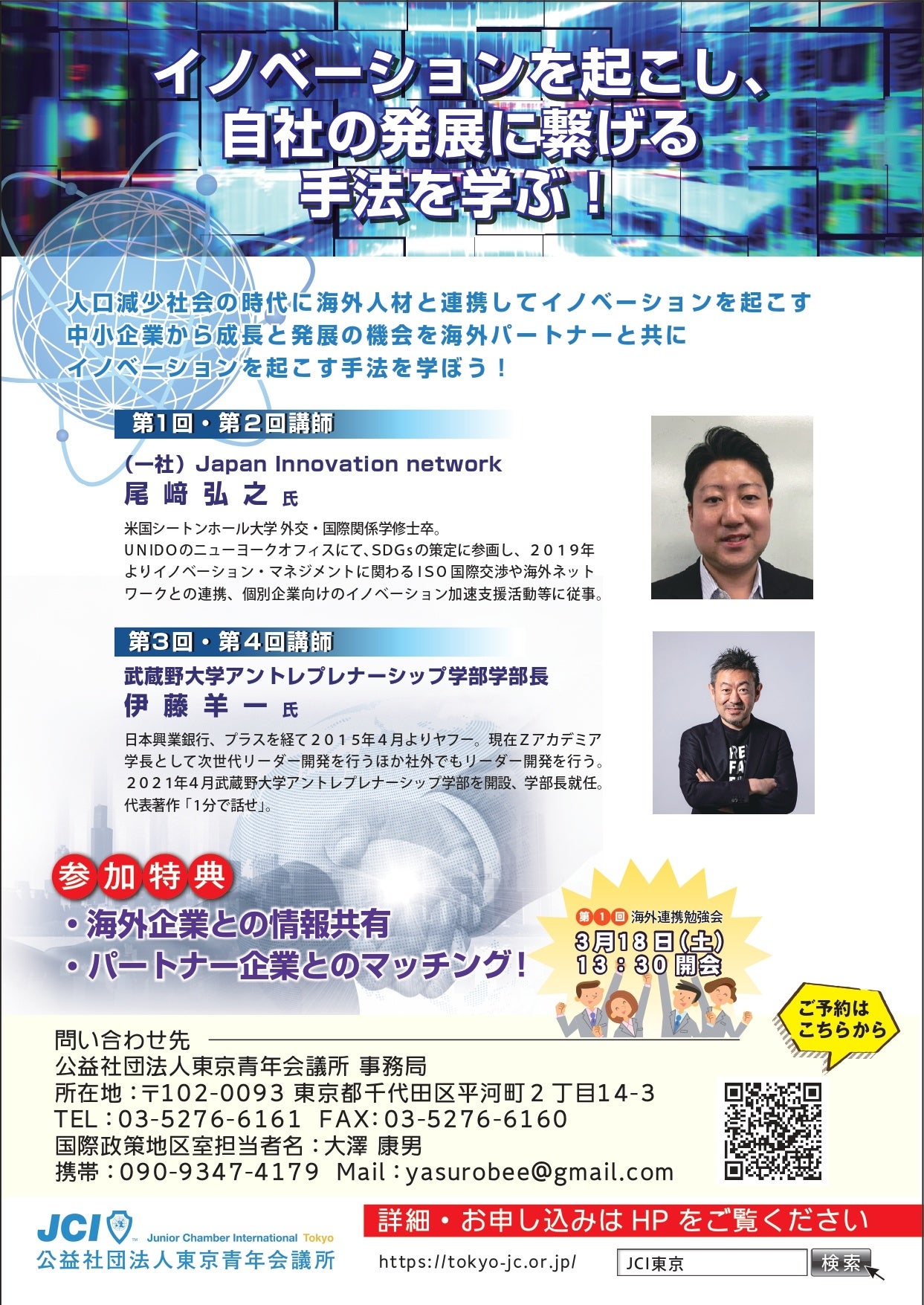 イノベーションから生まれる新たな付加価値!世界に通用する企業への成長を目指す中小企業の創出の為、東京青年会議所の国際連携力を活かしたケーススタディで学ぶ国際企業との企業とのビジネスマッチングを開催!