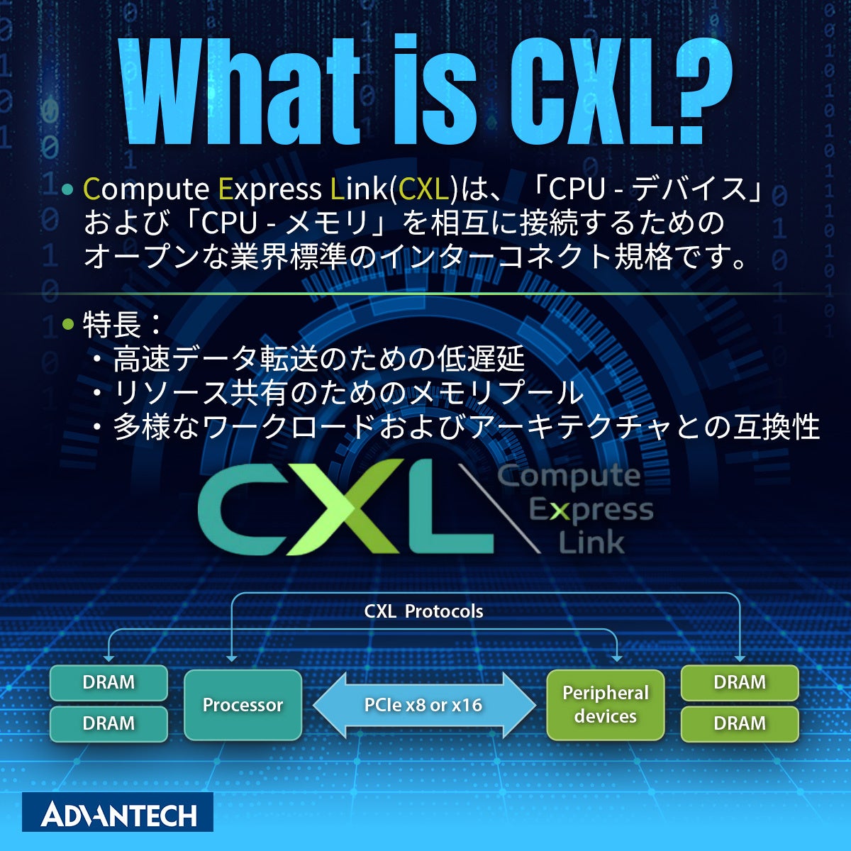 Compute Express Link (CXL)は、CPUと各種アクセラレータ、メモリ、その他のデバイス間の高速・低遅延通信のためのオープな業界標準規格です。人工知能(AI)、機械学習、HPCなどのデータ集約型アプリケーションの需要拡大に対応するために設計されました。特に、大規模データへ高速アクセスが必要とされるシステムにとっては、メモリ技術の進化は非常に重要であると考えられています。