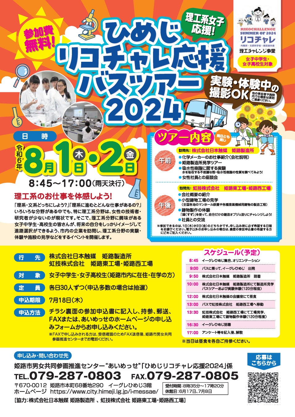 令和6年度理工チャレンジ事業「ひめじリコチャレ応援バスツアー2024」を開催します