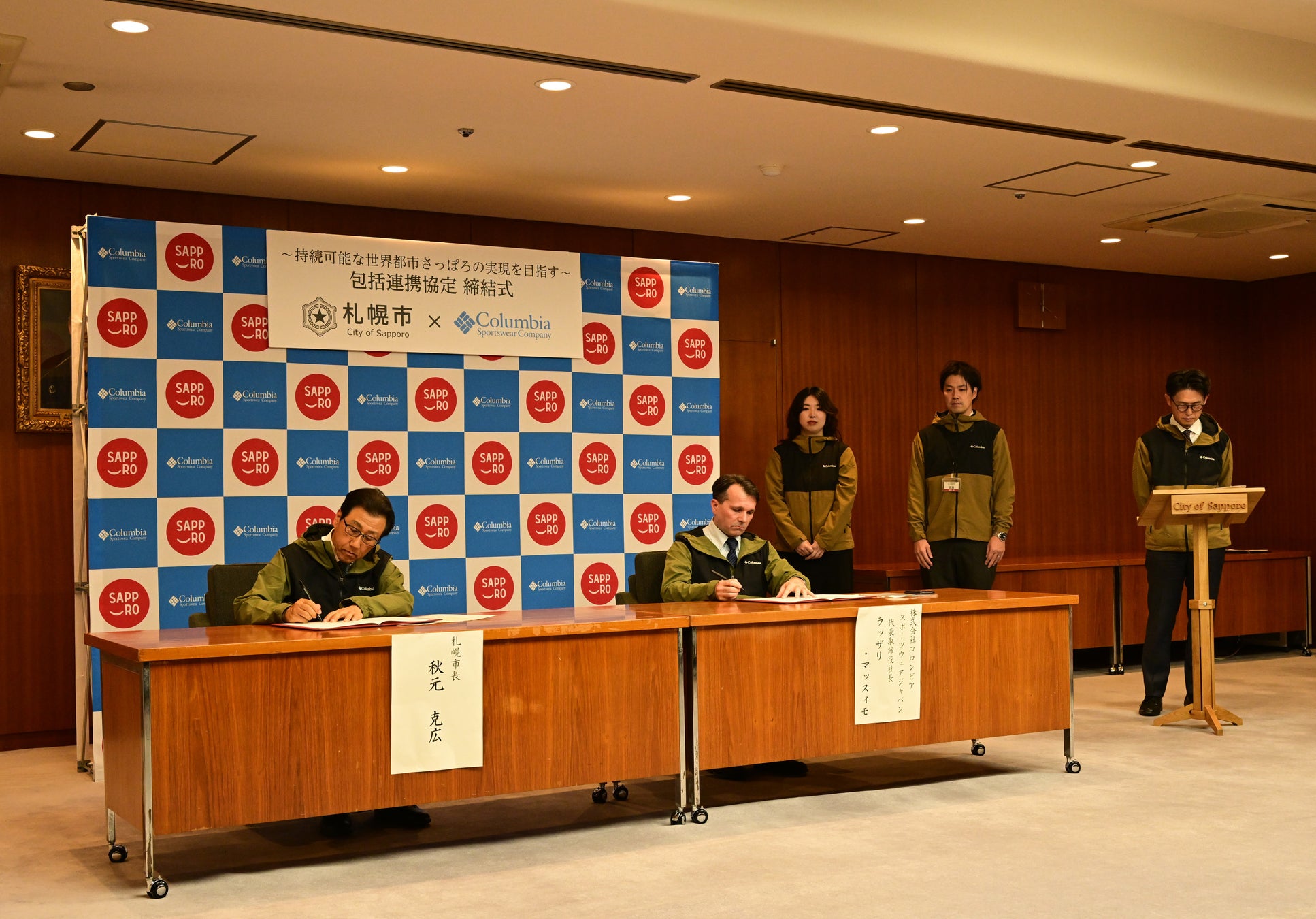 このような縁から2024年6月、札幌市とポートランド市の姉妹都市提携65周年事業の一環として、秋元札幌市長を代表とする訪問団がコロンビア米国本社を訪問。これをきっかけにポートランドに強い結びつきを持つコロンビアと札幌市が相互に連携した取組について協議がスタートし、この度の包括連携協定の締結が実現しました。