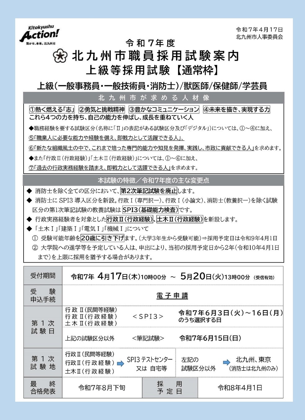 ★詳細は北九州市職員募集ホームページをご確認ください。