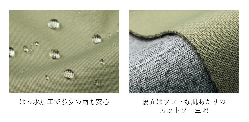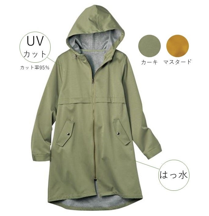 微光沢なタフタとソフトな肌あたりのカットソーを張り合わせたボンディング素材で風を通しにくくあたたか。表面はハリのあるタフタ生地。はっ水加工で多少の雨でも安心です。裏側はカットソー素材なので、直接肌にあたってもひんやりしないのも嬉しいポイント。UVも付いているので、油断しがちな春の日差しからもお肌を守ります。色は春先まで使いやすい、上品ミリタリーなカーキとアクティブな印象のマスタードの2色からお選びいただけます。カラフルアウターで、春はアクティブに過ごしませんか?