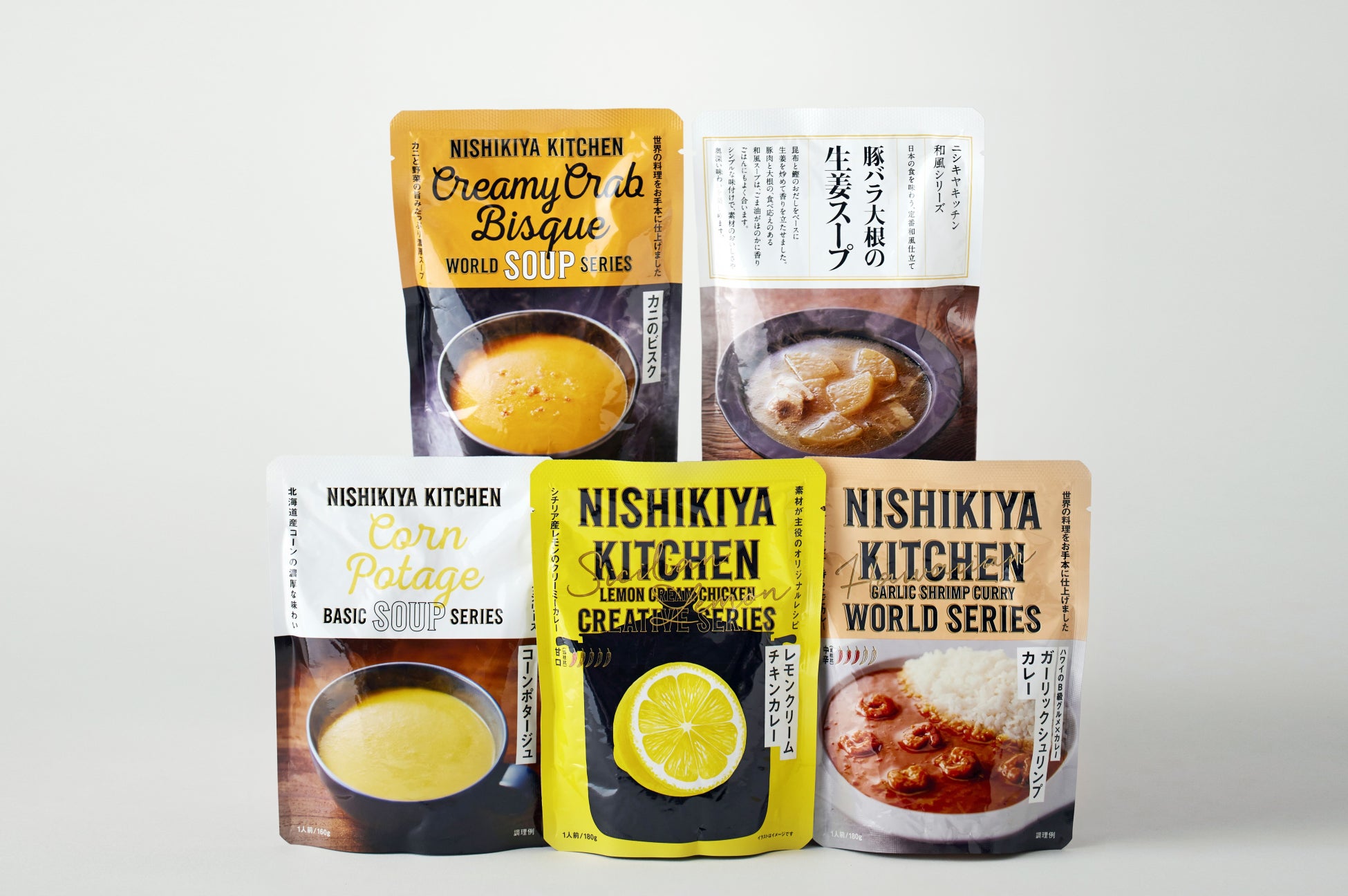 前身の自社ブランド「にしきや」は2011年に誕生しました。そして、そのブランド立ち上げから約10年後、生活が劇的に変化するなかで改めてブランドの使命を見つめ直し、皆さんのキッチンのような存在になれればという想いを込めて、2021年に『にしきや』から『NISHIKIYA KITCHEN』へと生まれ変わりました。皆さんに代わり手間ひまかけた料理をレトルトパックという小さな鍋に詰めてお届けしています。料理をつくる負担がもっと軽くなり、大切な時間が少しでも増えることを願っています。