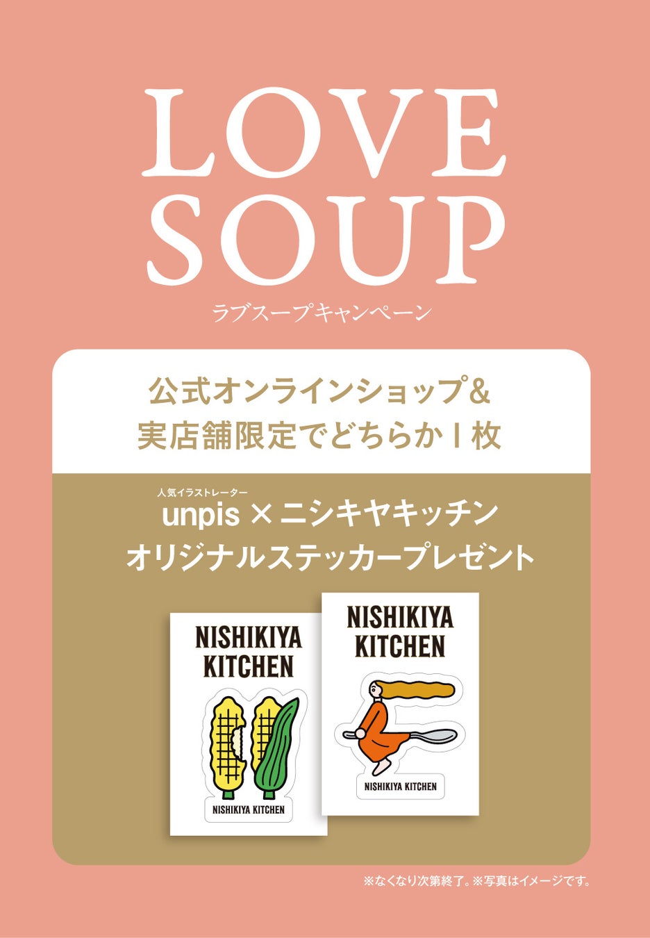 ニシキヤキッチンが、冬季限定「ラブスープキャンペーン」開催。心も体もあたたまる人気スープセットを販売!イラストレーター「unpis」コラボのオリジナルステッカーもプレゼント!