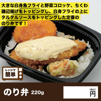 白身魚フライと野菜コロッケ・磯部揚げをのせた、定番人気ののり弁★