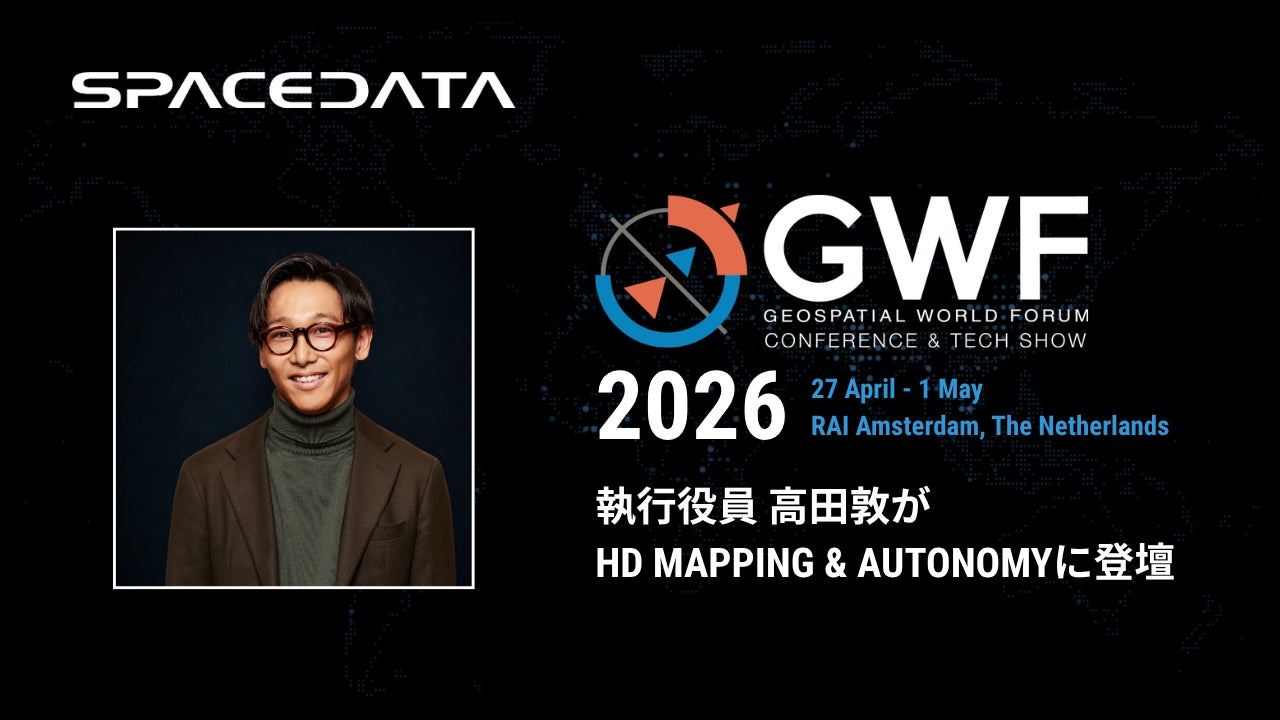 株式会社スペースデータ(東京都港区、代表取締役:佐藤航陽、以下「スペースデータ」)は、2026年4月27日(月)から5月1日(木)にかけてオランダ・アムステルダムのRAI Convention Centreで開催される「Geospatial World Forum 2026(GWF 2026)」のテクニカルトラック「HD Mapping & Autonomy」にグローバルアライアンス戦略室 執行役員の高田敦が登壇することをお知らせいたします。