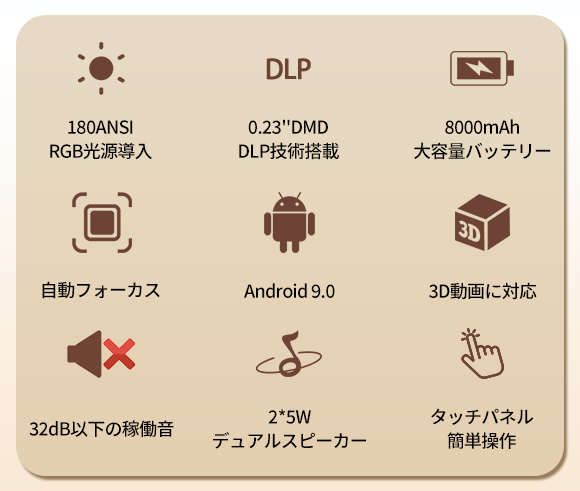 ・180ANSIルーメンに加え、アメリカ先端技術「DLP」も採用、素敵なビジュアル体験をお届け!