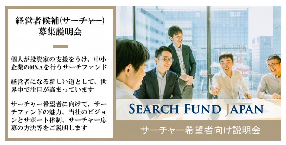 【セミナー】7月26日夜開催、経営者への新たなキャリアプランをつくるサーチファンド・ジャパンが経営者候補(サーチャー)募集の説明会