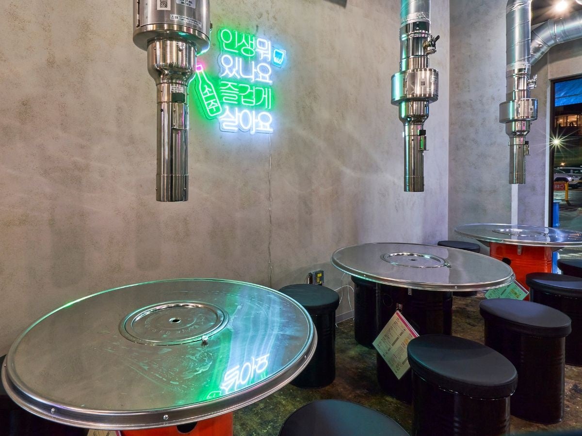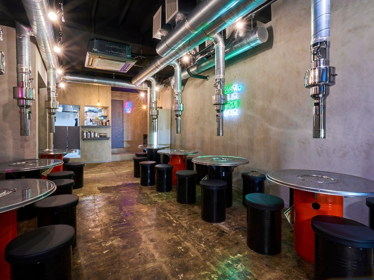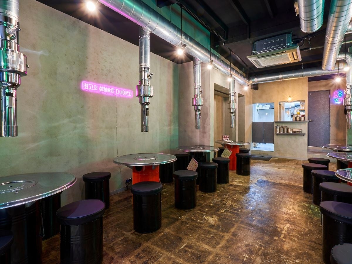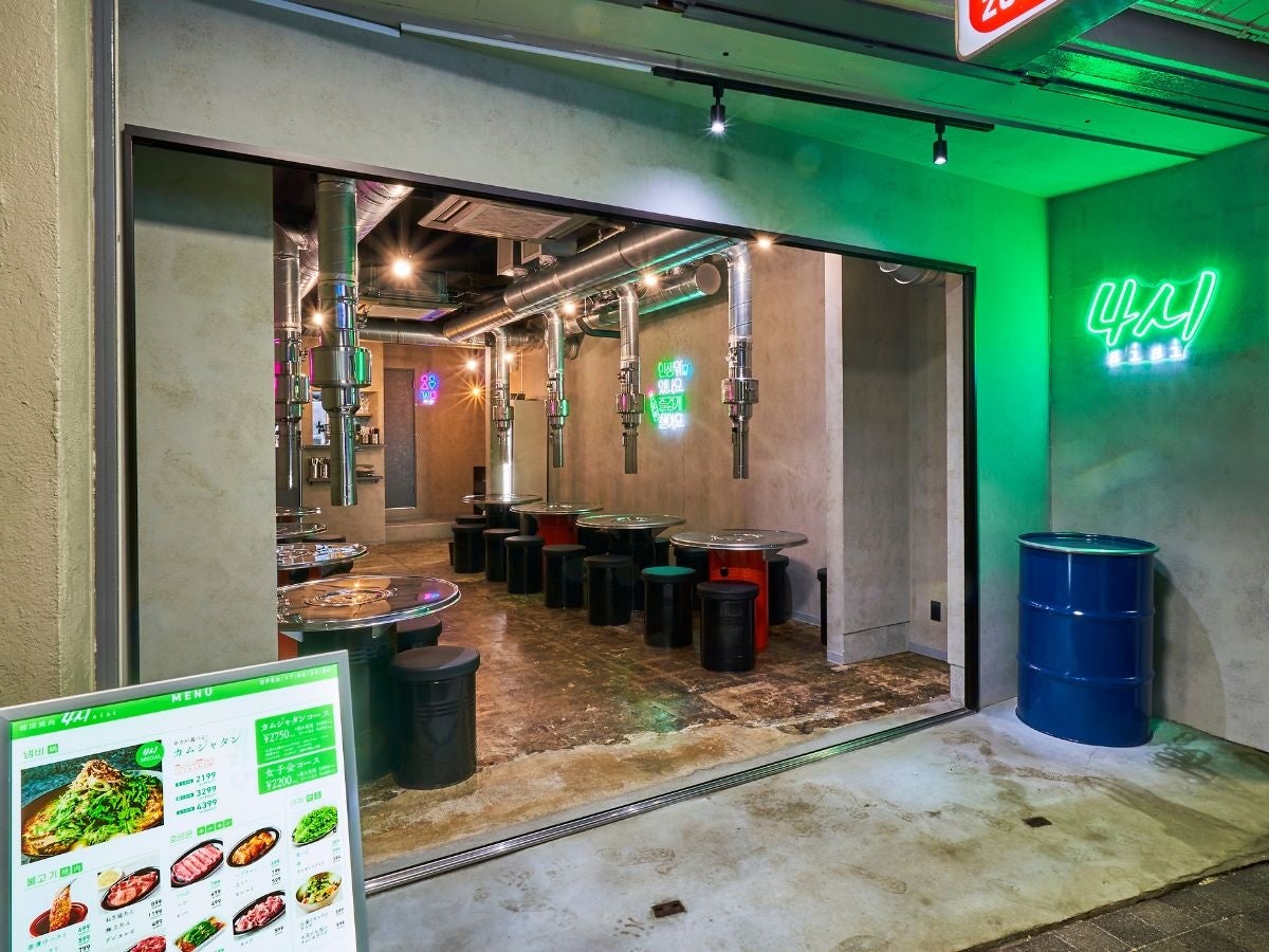 ネオンに照らされた韓国直輸入のテーブル、K-POPが流れる空間、立ち飲みスペースまで完備し、まるでソウル・弘大(ホンデ)の焼肉店に迷い込んだような気分に。