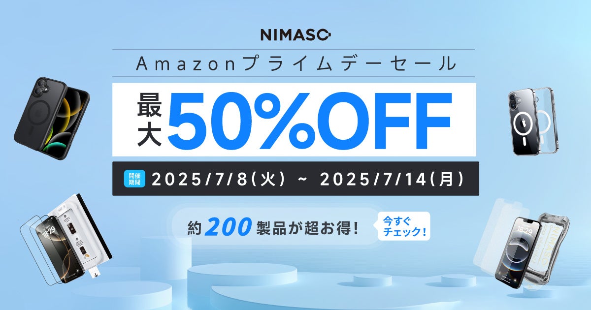 NIMASO JAPAN株式会社(本社:神奈川県川崎市)は、「Amazonプライムデー2025」にあわせ、2025年7月8日(火)0:00~7月14日(月)23:59の期間中、Amazon.co.jpにてスマートフォンアクセサリーの期間限定セールを開催いたします。