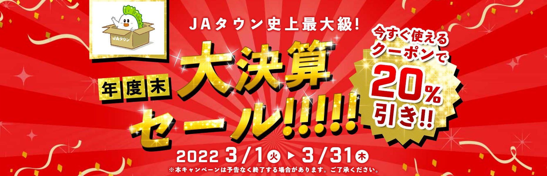 JA全農が運営する産地直送通販サイト「JAタウン」の「お肉の宅配肉市場」では、対象の商品が全品20%OFFで購入できる「年度末大決算セール」を開催中です。