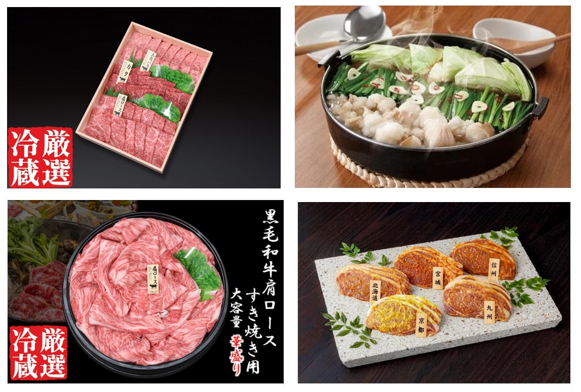 ほかにも、「黒毛和牛切り落し1kg」、「黒毛和牛肩ロースすき焼き用800g」などの大容量商品や、全国5ヶ所のご当地味噌を使用した「国産豚ロースご当地味噌漬け食べ比べセット」など、魅力的な商品を多数取り揃えています。