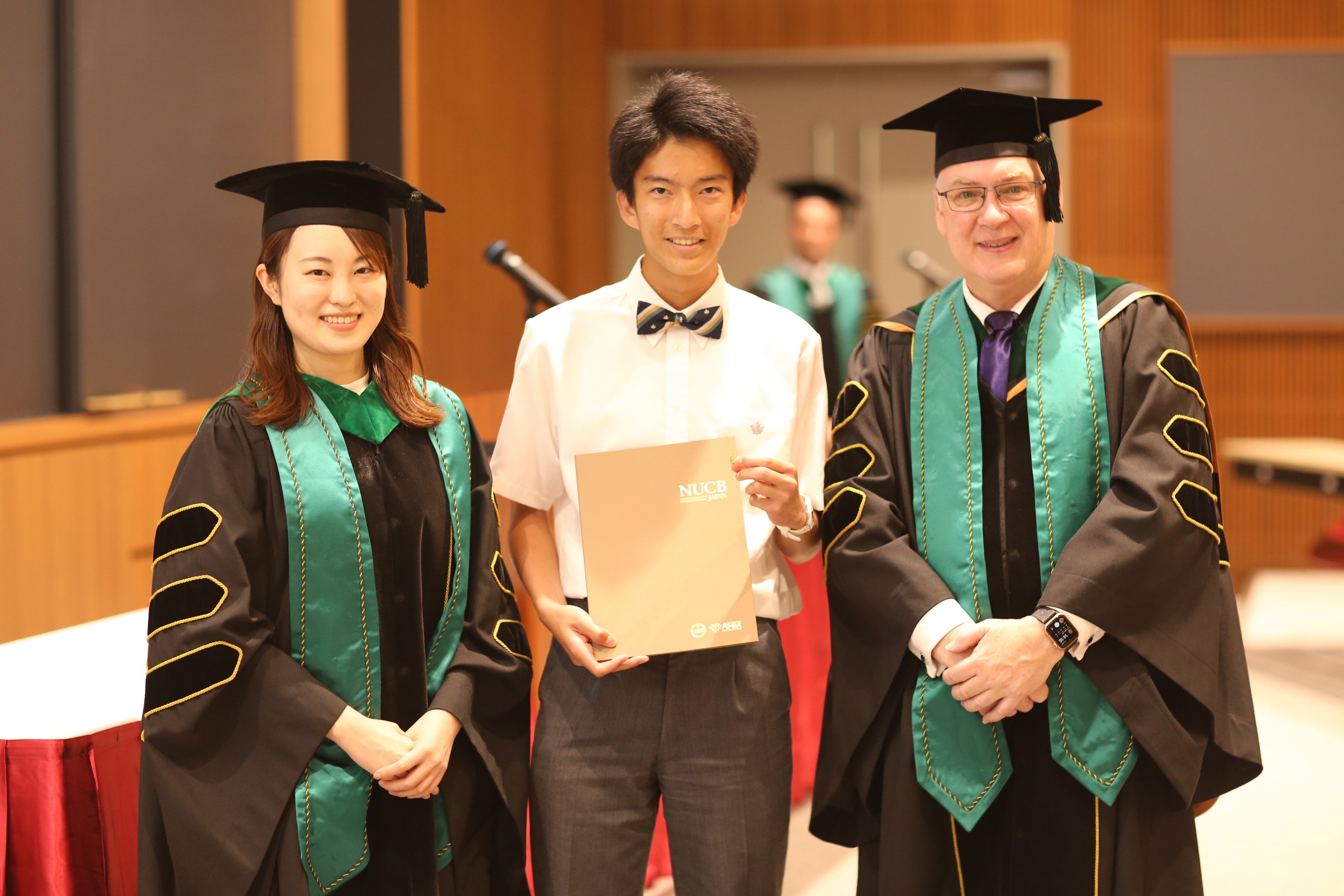 多くの保護者と教職員に見守られながら実施された修了式では、学校生活や寮生活において他の生徒の模範となり、さらに優秀な学業成績を収めた生徒に贈られる「Leadership Award」の表彰が行われました。今年度の受賞者は「このような賞をもらえてとても光栄です。」と喜びを顕にし、会場全体が祝福ムードに包まれました。また、有志の生徒が制作した1年間を振り返るビデオ上映では、入学から現在までに至る充実した学校生活や寮生活の様子を参列者とともに振り返りました。