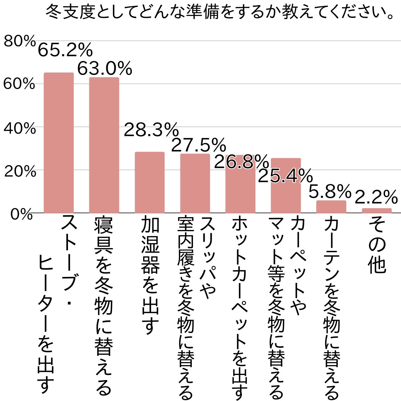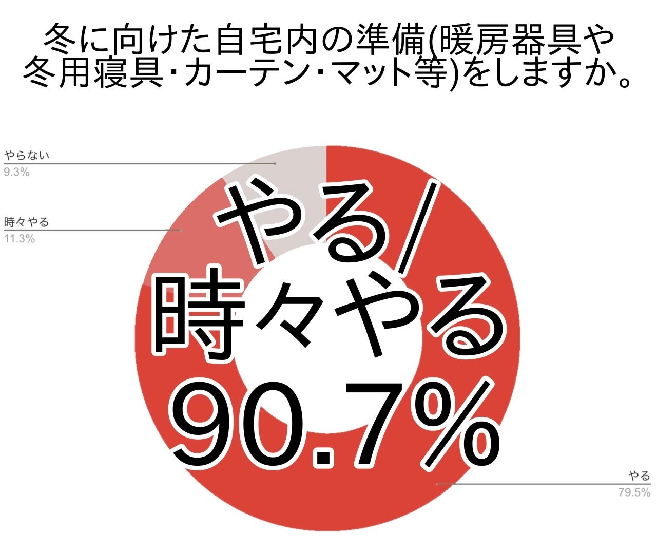 アンケートでははじめに、冬に向けた自宅内の準備(暖房器具や冬用寝具・カーテン・マット等)をするか尋ねました。