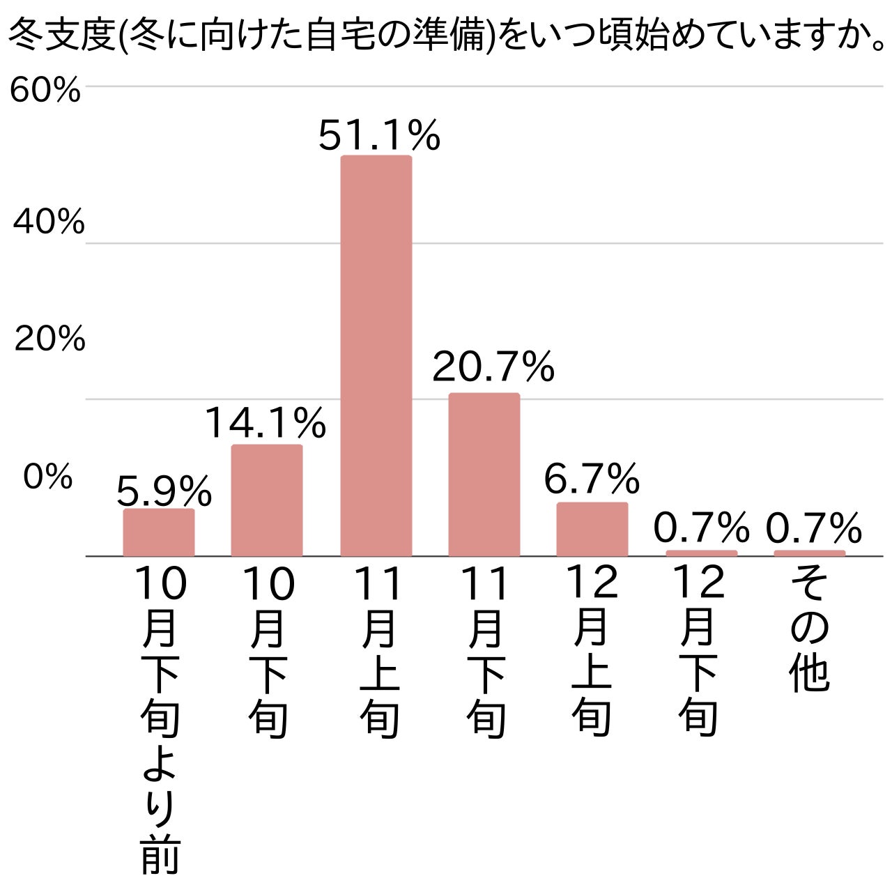 アンケートでは次に、冬支度(冬に向けた自宅の準備)をいつ頃始めているか尋ねました。