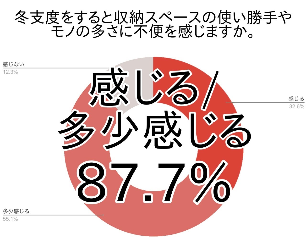 アンケートでは、冬支度をすると収納スペースの使い勝手やモノの多さに不便を感じるか尋ねました。