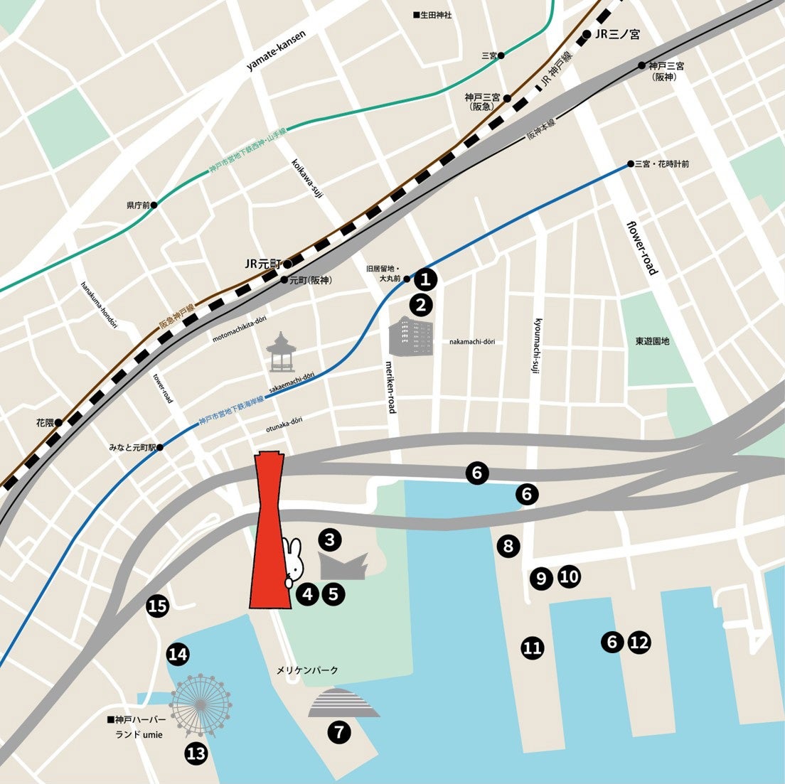 本イベントは、株式会社フェリシモが運営する2024年にリニューアルオープンした「神戸ポートタワー」と、ディック・ブルーナのイラストと共にワインや食事が楽しめるワインバル&カフェレストラン「Dick Bruna TABLE[ディック・ブルーナ テーブル]」が主催するエリア連携企画で、神戸港を望む約91万㎡のエリアに位置する15の施設がディック・ブルーナのミッフィーの世界観に包まれます。アート、観光、グルメ、宿泊、クルーズなど、さまざまな形でミッフィーが神戸の街に登場しますのでご期待ください。