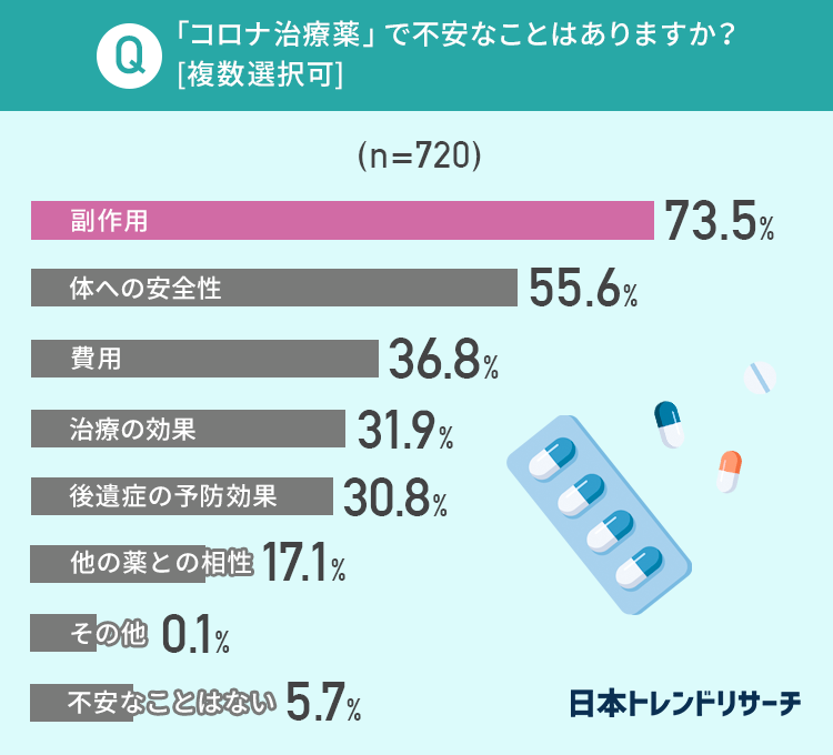 【コロナ治療薬】半数以上が「副作用」と「体への安全性」を不安だと思っている