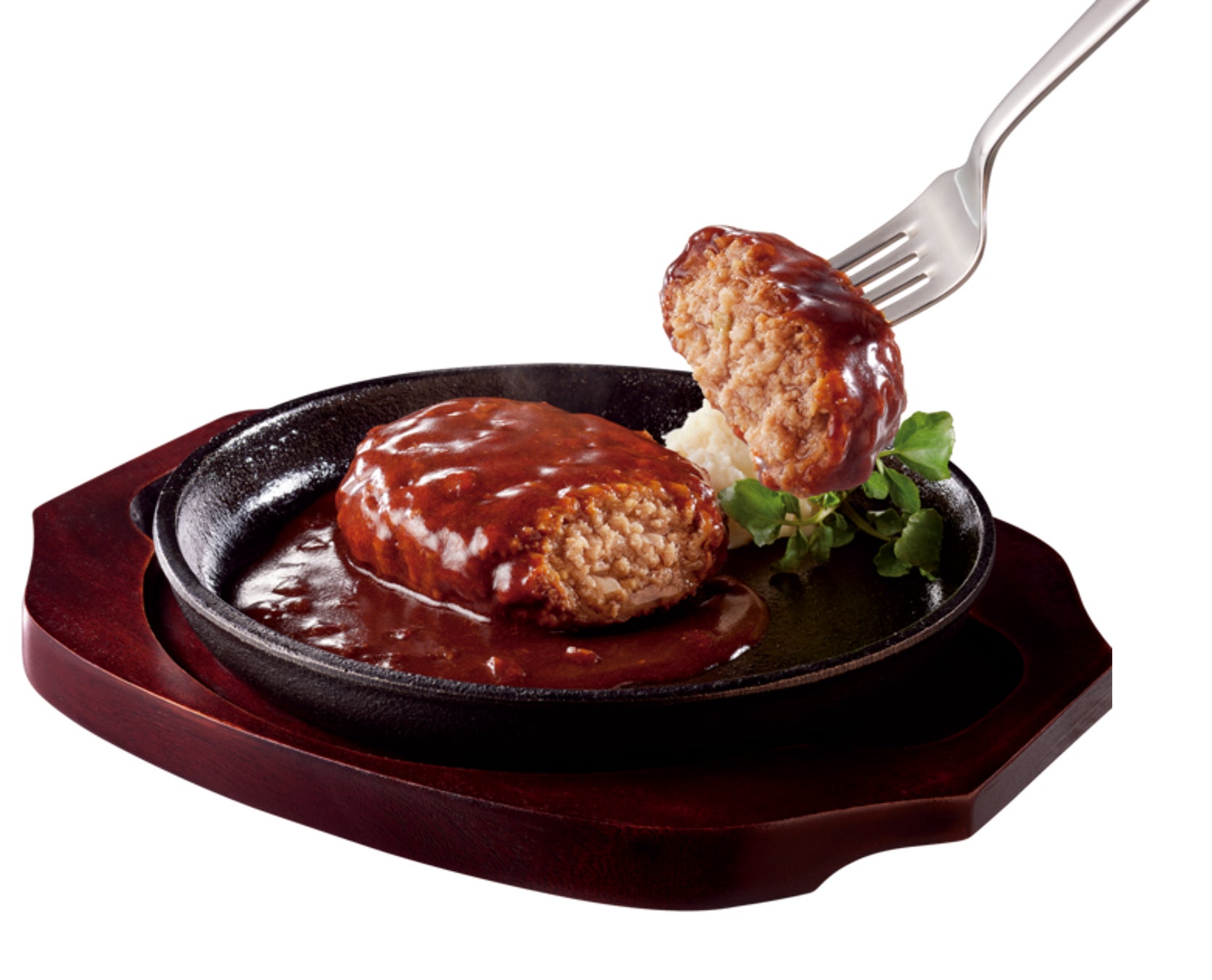 市場ではほとんどが牛・豚の合い挽き肉を使用した冷凍ハンバーグが主流な中、2年の開発期間を経て、牛肉を100%使用した冷凍ハンバーグの開発に成功しました。