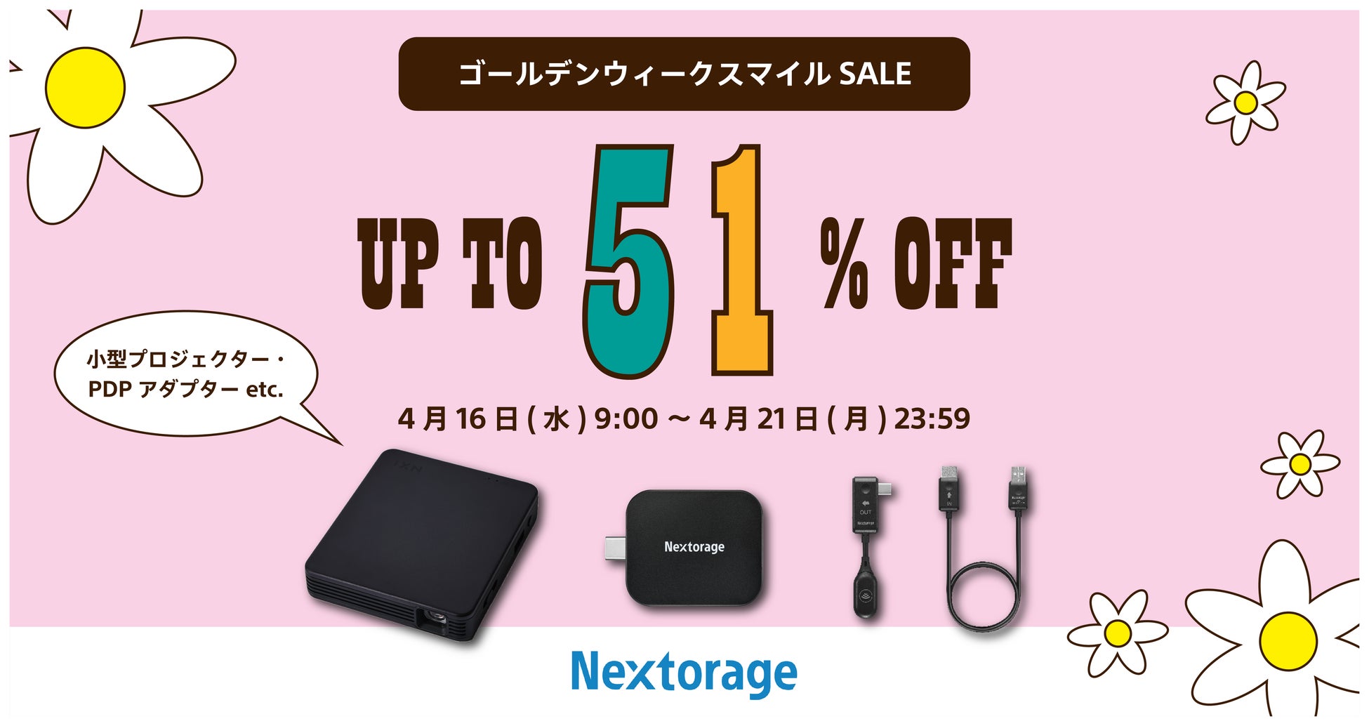 Nextorage株式会社(ネクストレージ株式会社、代表取締役:本多 克行、神奈川県川崎市)は、2025年4月16日(水) より開催される先行セール、2025年4月18日(金)より開催されるAmazonゴールデンウィーク スマイルSALEに、ベッドルームプロジェクターなどの映像関連機器で参加することをお知らせいたします。