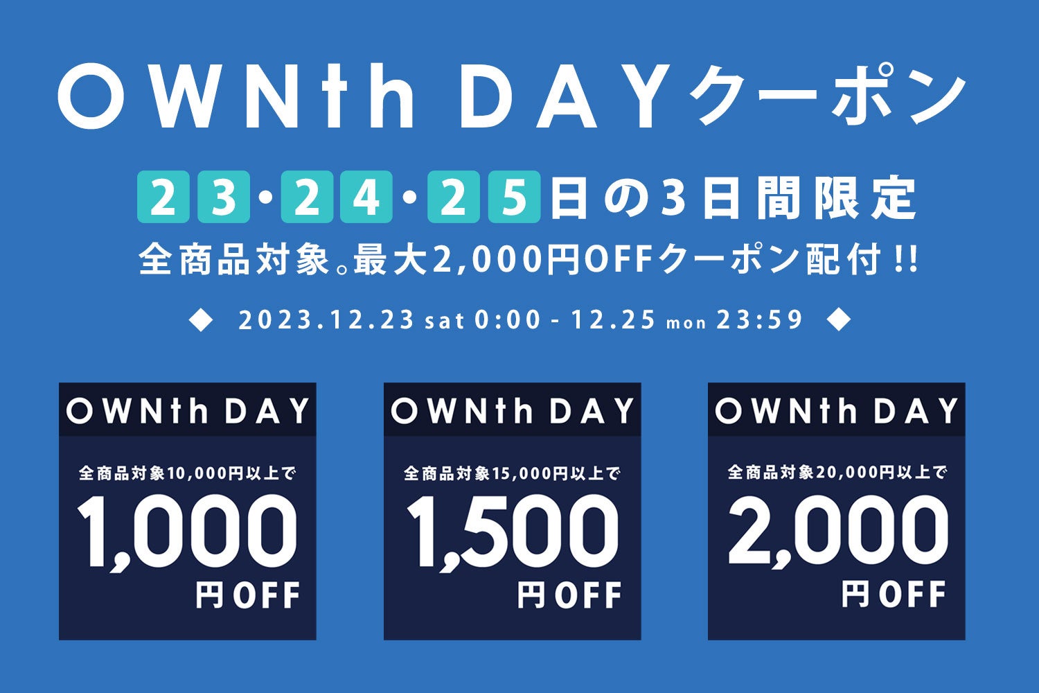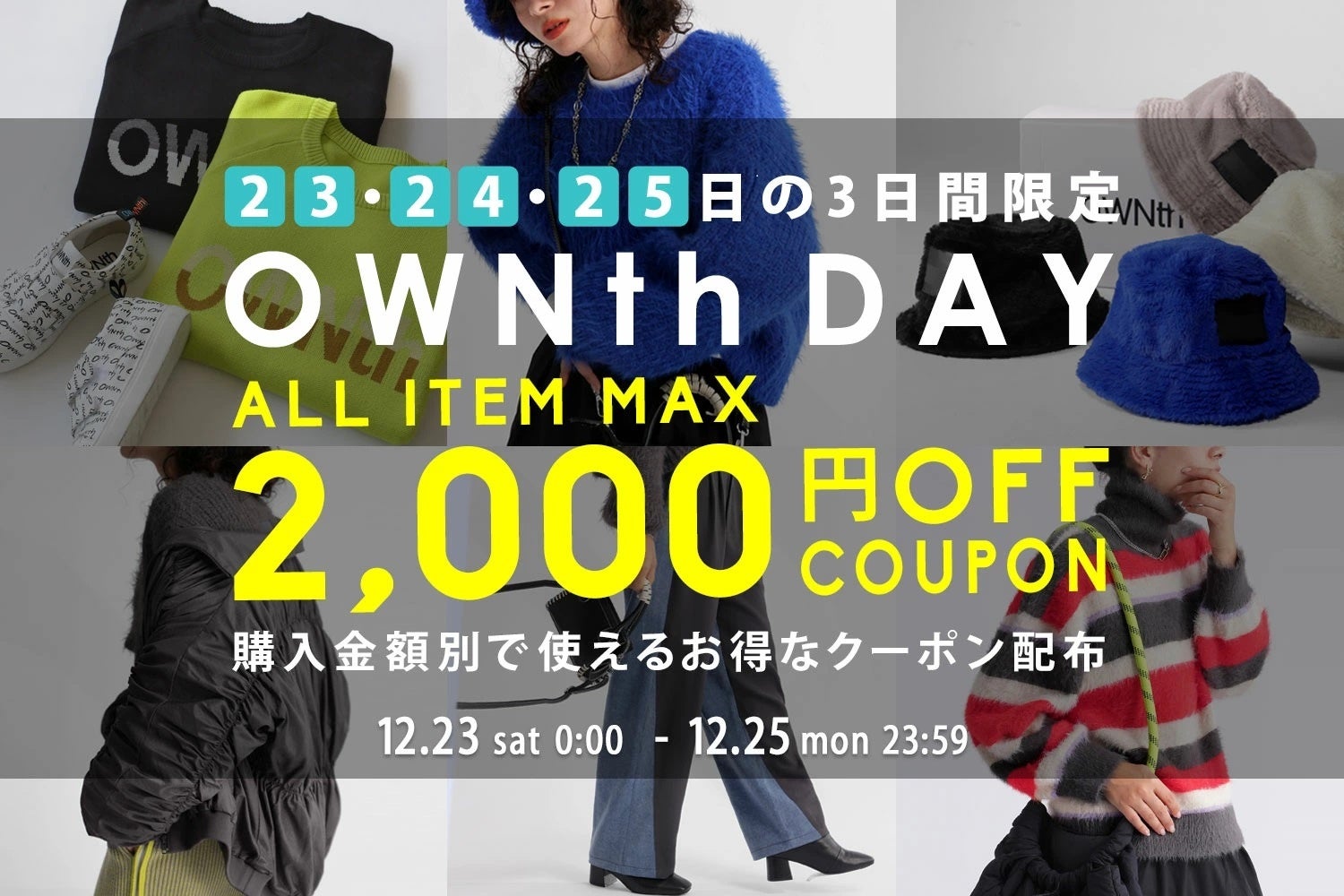 \OWNth DAY開催/12月23日・24日・25日の3日間限定!!欲しかったあのアイテムがクーポンでお得に購入できるのは今だけッ!