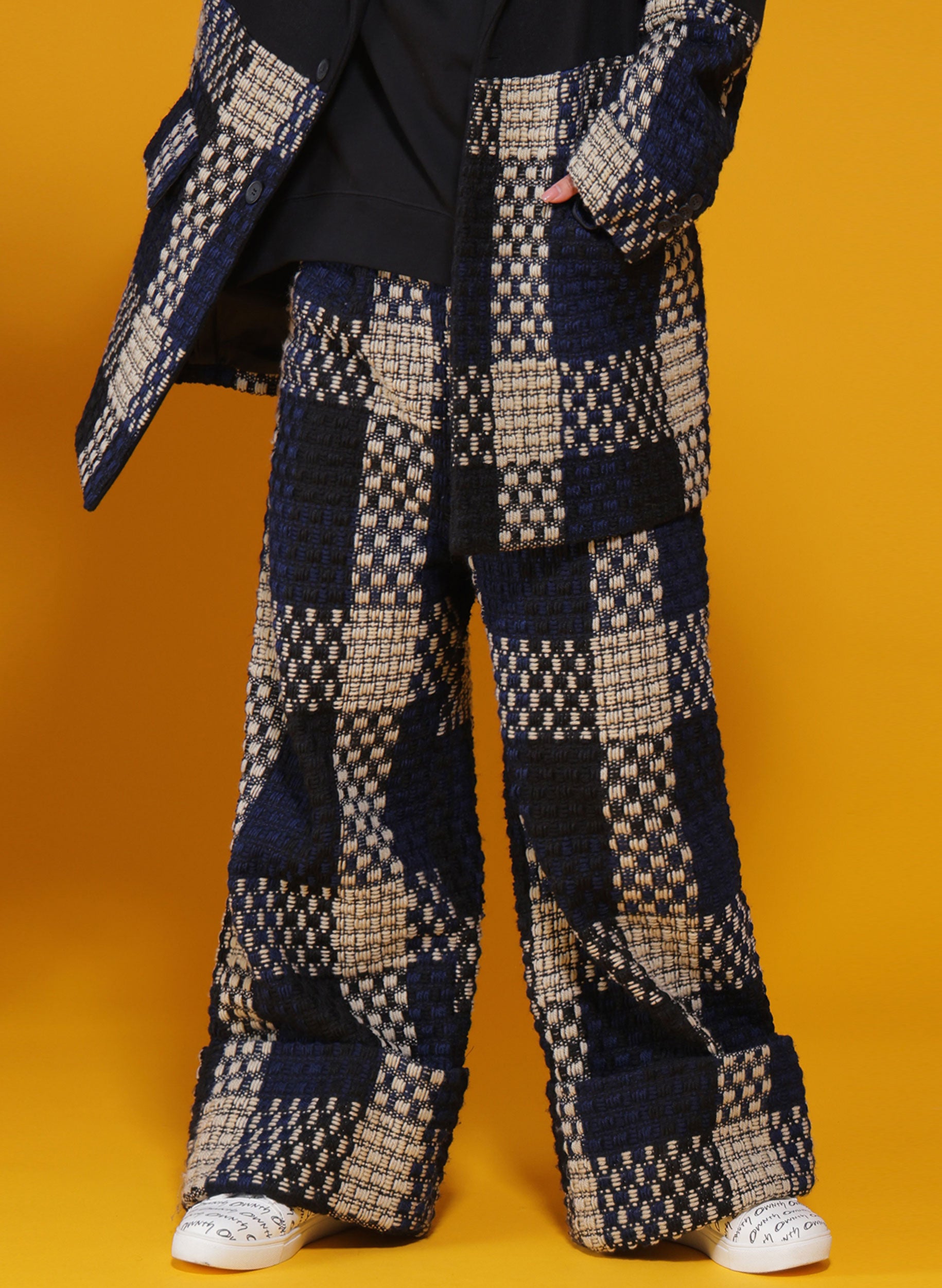 3色使いのツイード生地が個性派ながらもシックで大人びた印象に仕上げたワイドパンツ。