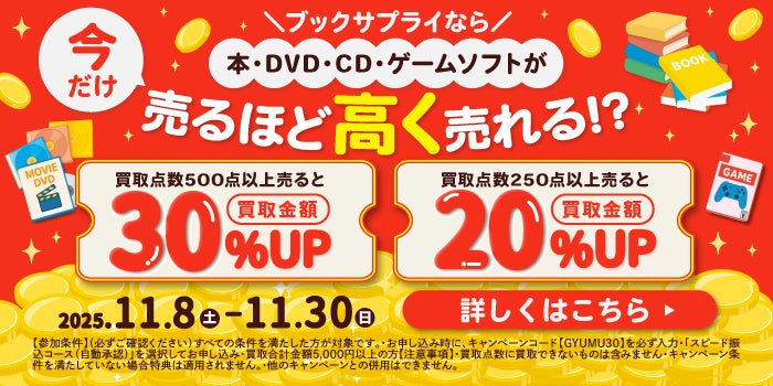 ブックサプライでは、買取金額が”最大30%UP“する超おトクなキャンペーンを絶賛開催中!