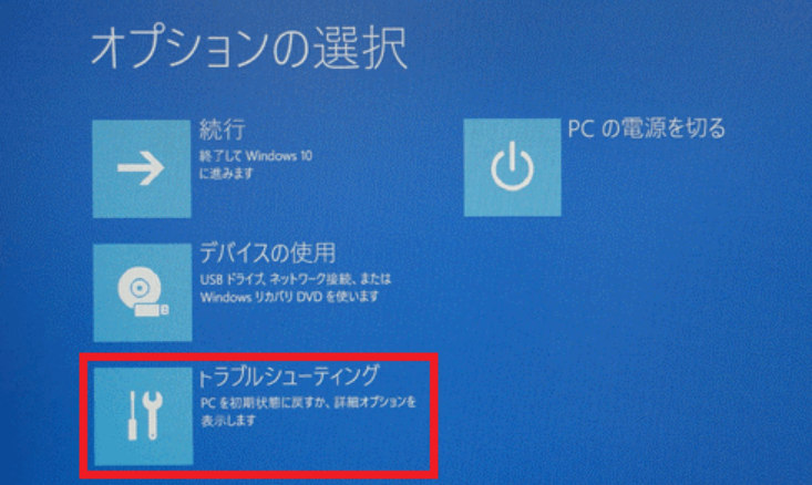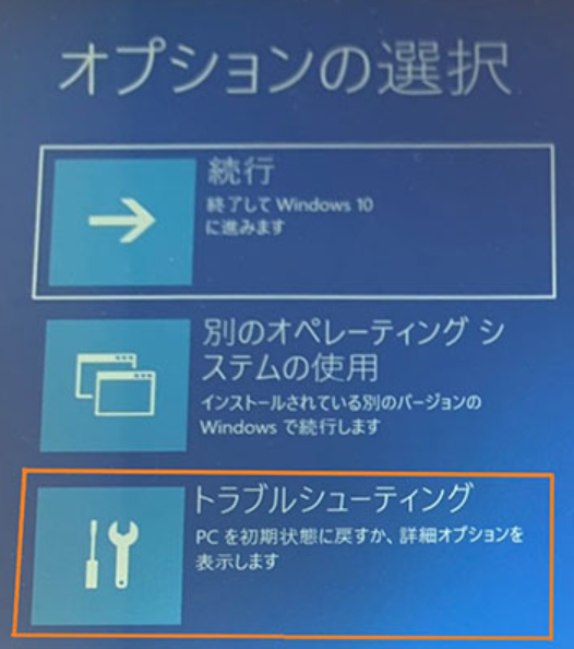 Step4: 「オプションの選択」という画面が表示されるので、「トラブルシューティング」を選択。